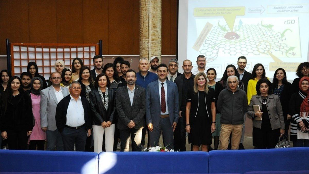 Aydın Adnan Menderes Üniversitesi (ADÜ) ve Türkiye Bilimler Akademisi (TÜBA) tarafından düzenlenen TÜBA Asosiye Üyesi Doç. Dr. Önder Metin’in konuşmacı olarak katıldığı ‘Küresel Enerji Sorunlarına Yönelik Enerji Depolama ve Dönüşüm Sistemleri için Nanokatalizörler’ konulu konferans, AİSYEM Konferans Salonu’nda gerçekleşti.
