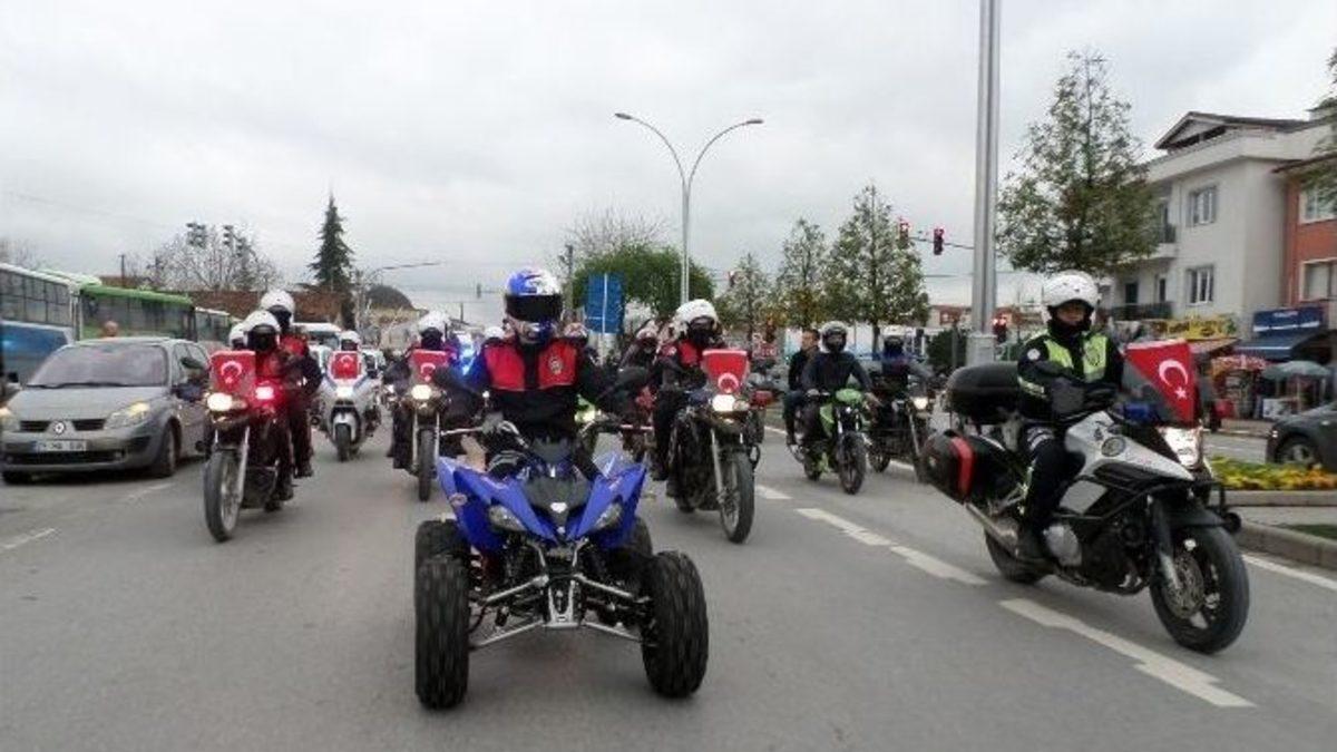 Türk Polis Teşkilatının 170’inci yıl dönümü Sakarya’da çeşitli etkinliklerle kutlanmaya başlandı. Etkinlik kapsamında Kent Meydanı’nda Dünya Motosiklet Şampiyonu Kenan Sofuoğlu’nun katılımıyla bir gösteri düzenlendi.Her yıl 10 Nisan da kutlanan Polis Haftası nedeniyle Sakarya Kent Meydanı’nda Dünya Motosiklet Şampiyonu Kenan Sofuoğlu’nun katılımıyla bir etkinlik düzenlendi. Gerçekleştirilen etkinliğe, Sakarya Vali Hüseyin Avni Coş, Garnizon Komutanı Tuğgeneral Bilgehan Saymaz, AK Parti Sakarya İl Başkanı Fevzi Kılıç, İl Jandarma Komutanı Albay Adnan Şimşiroğlu, daire müdürleri, polis memurları ve çok sayıda vatandaş katıldı.Gösteri öncesi bir açıklama yapan Kenan Sofuoğlu, “Daha önceki yıllarda böyle bir organizasyona Sakarya’da katılmıştım. Sağolsun emniyet müdürümüz bana karşı iyidir bu konularda. Çoğu zaman birtakım görüşmelerde bulunuyoruz, kendisinin ziyaretine gidiyorum zaten. Hollanda’daydım, özellikle bu program için geldim Sakarya’ya. Tek üzücü nokta bugün yağmura denk geldik, onun için çok fazla motorcu katılım gösteremedi programa. Motosikletçiler genelde iyi havayı tercih eder ama gene de Sakarya’da ilgi her zaman büyük olduğu için buraya gelenlerin sayısı iyi. Ufak bir şov yapmaya çalışacağım burada, insanları eğlendirecek kadar, motosiklete ilgi duyacak kadar ufak bir gösteri yapacağım. Daha sonrasında ise Sakarya’daki motosikletçi arkadaşlar ve polisler ile birlikte ufak bir şehir turu yapacağız” diye konuştu.Etkinlik, Dünya Motosiklet Şampiyonu Kenan Sofuoğlu’nun motosiklet gösterimi ile başladı. Gösteri sırasında motosikletiyle yaptığı hareketlerle izleyicilerin büyük ilgisini çeken Sofuoğlu’na, Vali Coş teşekkür belgesi verdi. Ünlü oyuncu Oktay Kaynarca da Kent Meydanı’nda kısa bir motosiklet gösterisi yaptı.Yunus Motorize polis ekipleri, motorlu trafik polisleri, Kenan Sofuoğlu ve vatandaşların kendilerine ait motosikletler ile Kent Meydanı’ndan başlayan ve Adnan Menderes Caddesi istikametinden Çark Caddesi’nin sonuna kadar kısa bir şehir turu gerçekleştirilmesinin ardından program sona erdi.