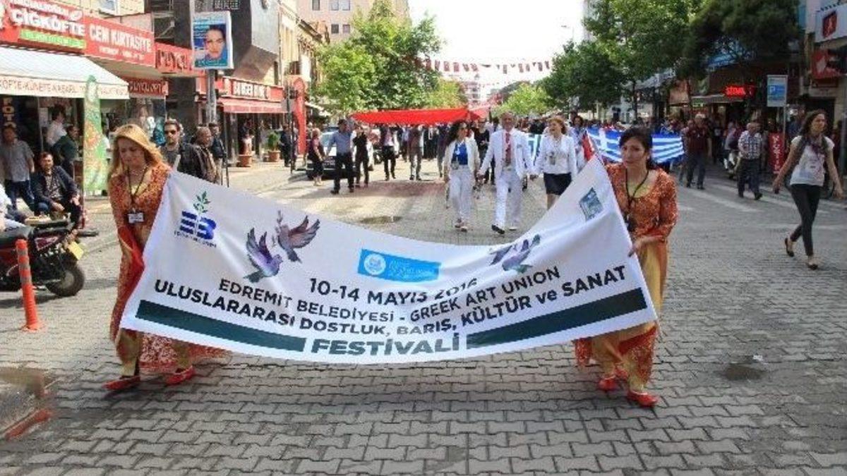 Balıkesir’in Edremit ilçesinde, Edremit Belediyesi-Greek Art Union Uluslararası Dostluk, Barış, Kültür ve Sanat Festivali" festival yürüyüşü ile başladı.4 Gün sürecek olan Edremit Belediyesi - Greek Art Union Uluslararası Dostluk, Barış, Kültür ve Sanat Festivali, Ticaret Odası önünden başlayarak Cumhuriyet meydanında sona eren kortej yürüyüşü ile başladı. Yoğun katılımın gözlendiği kortej yürüyüşü sonrasında Cumhuriyet Meydanında resmi açılış töreni gerçekleştirildi.Edremit Belediye Başkanı Kamil Saka ve Yunanistan’ın Naussa Belediye Başkanı Nikos Koutsougiannis halka seslenerek dostluk ve kardeşlik mesajları verdiler. Konuşmaların ardından Edremit, Balıkesir ve Burhaniye’de halk oyunları ekipleri gösteri yaptı. Ayrıca Naussa Orkestrasının kısa dinletisi ilgi ile dinlendi.4 Gün sürecek sanat festivalinde Fotoğraf, resim, plastik sanatlarla ilgili sergiler ve konserler halk ile buluşacak.