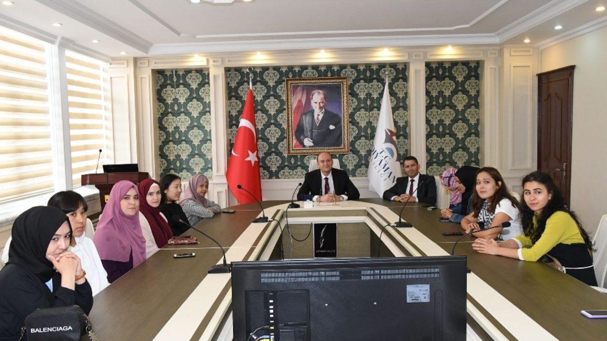 Türkiye Cumhuriyeti’nin sağladığı bursla 30 ülkeden Türkiye’ye gelerek Erciyes Üniversitesinin farklı bölümlerinde öğrenip görüp, yüksek lisans yapan 30 kişilik kız öğrenci grubu, Adıyaman Belediyesinin hayata geçirdiği “Kültür Elçileri” projesi kapsamında Adıyaman’a gelerek, Adıyaman Valiliğini ziyaret etti.