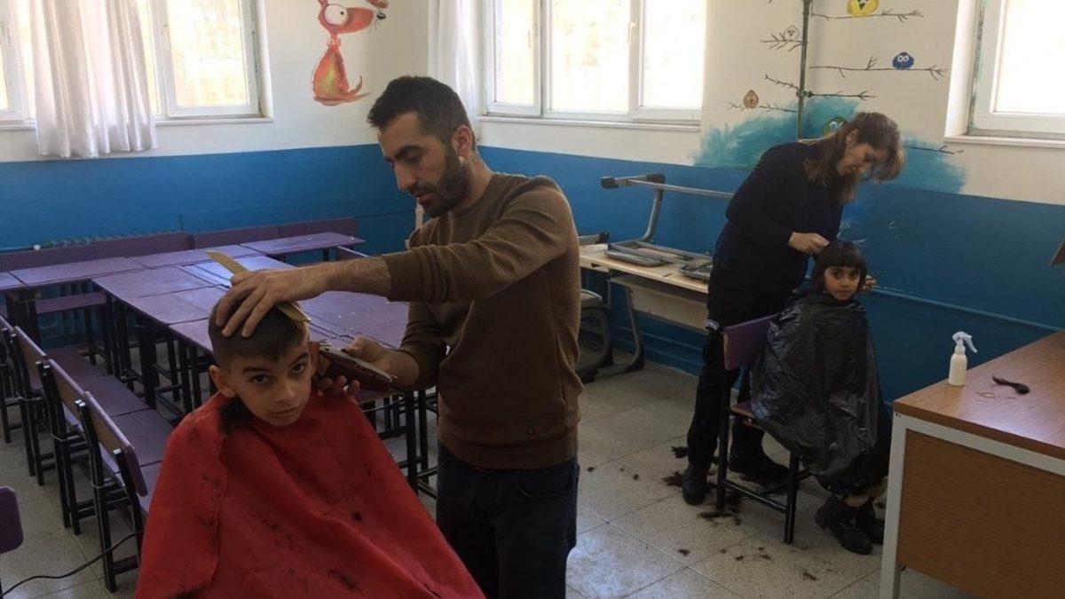 Şırnak’ın Uludere ilçesinde Kuaförüm Köyümde Projesi kapsamında köy okullarındaki öğrenciler ücretsiz tıraş edildi.