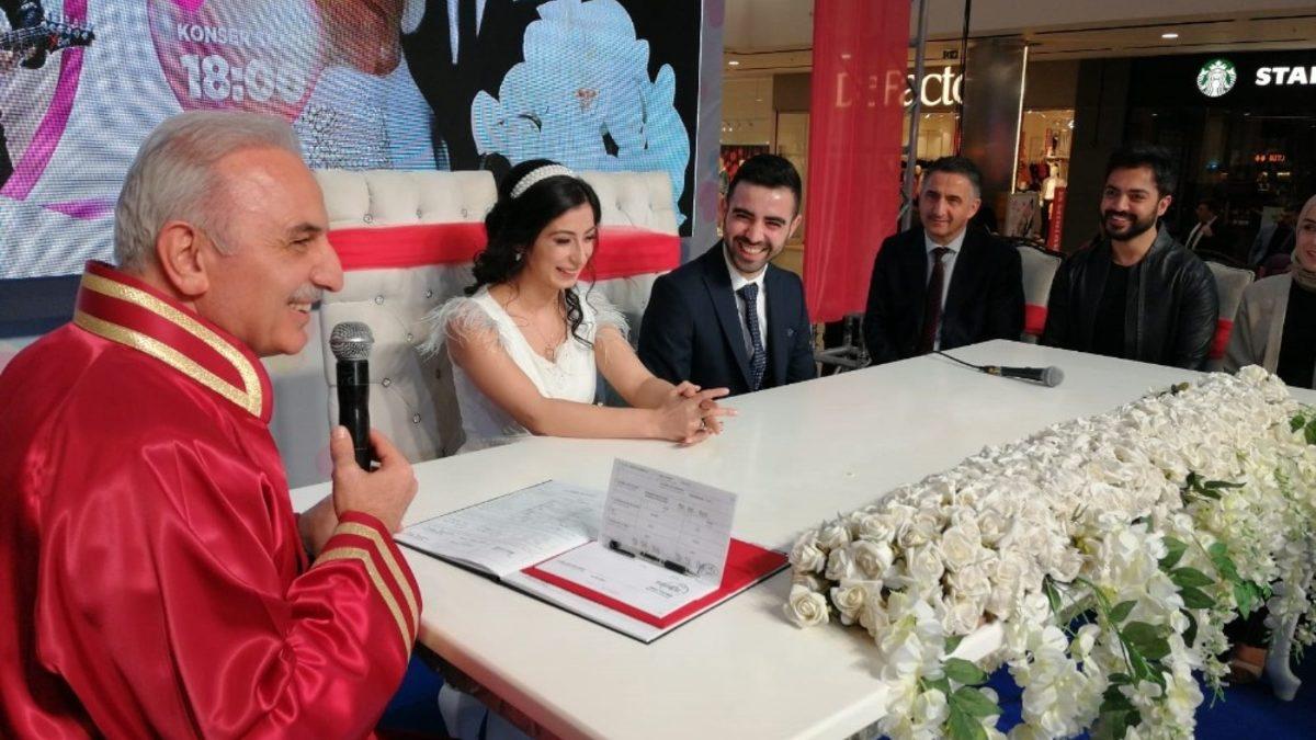 Ümraniye’de 14 Şubat Sevgililer Günü’nde evlenmek isteyen 14 çiftin nikahı, düzenlenen toplu nikah töreninde Başkan İsmet Yıldırım tarafından kıyıldı. Nikah şahitleri şarkıcı Yusuf Güney olan 14 çift, bir ömür boyu mutluluk için "evet" diyerek, hayatlarını birleştirdi.