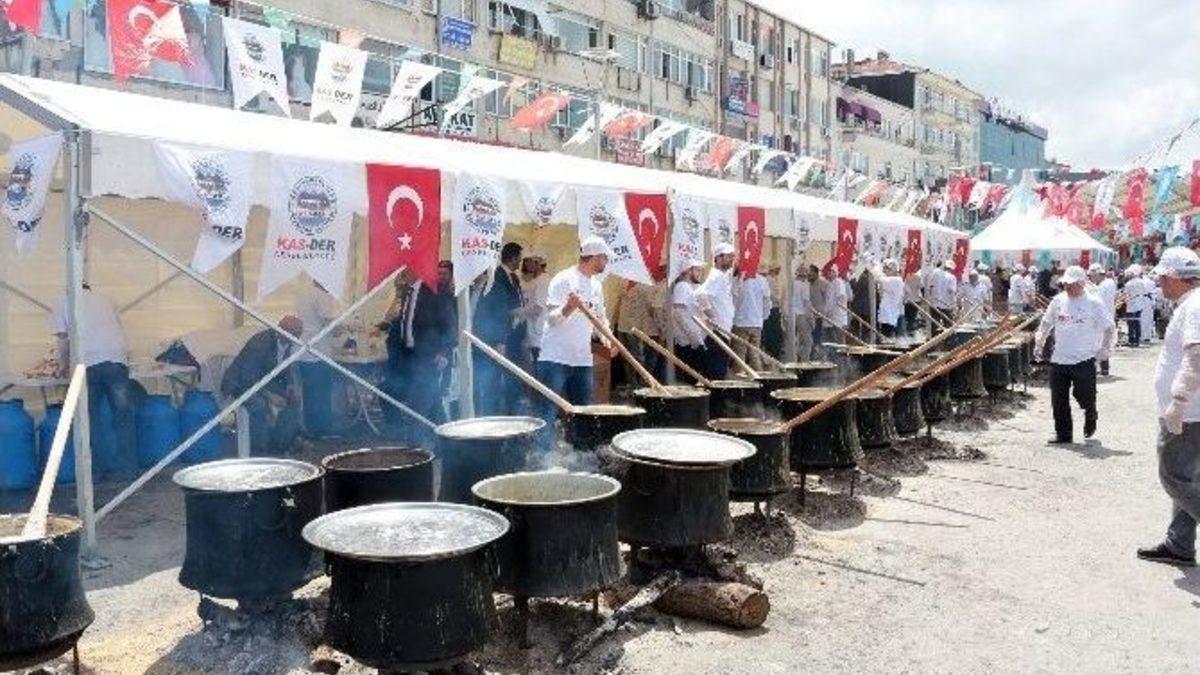 Ümraniye Belediyesi tarafından düzenlenen Keşkek Şenliği’nde 60 kazan Keşkek yaklaşık 30 bin vatandaşa ilçe meydanında dağıtılarak dünya rekoruna imza atıldı.Ümraniye Belediyesi ve Kastamonulular Derneği’nin (KASDER) düzenlediği Keşkek Şöleni renkli görüntülere sahne oldu. Kastamonu’nun yöresel lezzeti Keşkek’in dağıtıldığı şenliğe, Ümraniye Belediye Başkanı Hasan Can’ın yanı sıra çok sayıda vatandaş katıldı. Şenlikte 60 dev kazan içerisinde pişirilen Keşkek ile dünya rekoruna imza atıldı.Şenlikte 60 kazan Keşkek sabahın erken saatlerinden itibaren pişirilerek kent meydanında yaklaşık 30 bin vatandaşa ikram edildi. Uzun kuyrukların oluştuğu Keşkek sırasında vatandaşlar kendilerine ikram edilen Kastamonu’nun yöresel lezzetini afiyetle yedi.“BU GELENEĞİN BİTMEMESİ LAZIM”Ümraniye Belediye Başkanı Hasan Can etkinlik alanına gelerek, Keşkek yapan ustalarla sohbet etti. Başkan Hasan Can, “Keşkek bizim milli yemeğimiz. Bu aynı zamanda düğün yemeğidir. Bu geleneğin bitmemesi lazım. Yapılması zor bir yemek olduğu için önemli bir yemek” dedi.Başkan Can Keşkek’i orijinal haliyle yaptıklarını vurgulayarak, “Geçen sene de bu şenliği düzenledik ve 50 kazan keşkek dağıttık. Bu sene 60 oldu. Kazanları bile köylerden topladık getirdik. Çünkü orijinal haliyle yapıyoruz. Odun ateşinde yapıyoruz. Ben bu anlamda emeği geçen herkese çok teşekkür ediyorum” ifadelerini kullandı.Ümraniye Belediye Başkanı Hasan Can şenlik alanında aynı zamanda vatandaşlara Keşkek dağıttı.60 kazan Keşkek’i yapan aşçılardan biri ise, “Burada bir ton keşkeklik buğday bir ton kuzu eti 500 kilo süt 500 kilo tereyağı var. Sabah 5’ten beri bu yana yapıyoruz. 60 bin kazanı 30 bin vatandaşa hazırladık” şeklinde konuştu.1,5 SAAT KEŞKEK İÇİN BEKLEDİYaklaşık 1,5 saat keşkek sırasında beklediğini söyleyen bir vatandaş, “Kastamonulu olduğum için buradayım. Çok güzel bir hizmet. Belediyemize teşekkür ediyoruz. Keşkek de çok güzel olmuş” ifadelerini kullandı.Öte yandan, şenlik alanında kurulan stantlarda vatandaşlara çeşitli yöresel giysiler ve yemekler verildi.