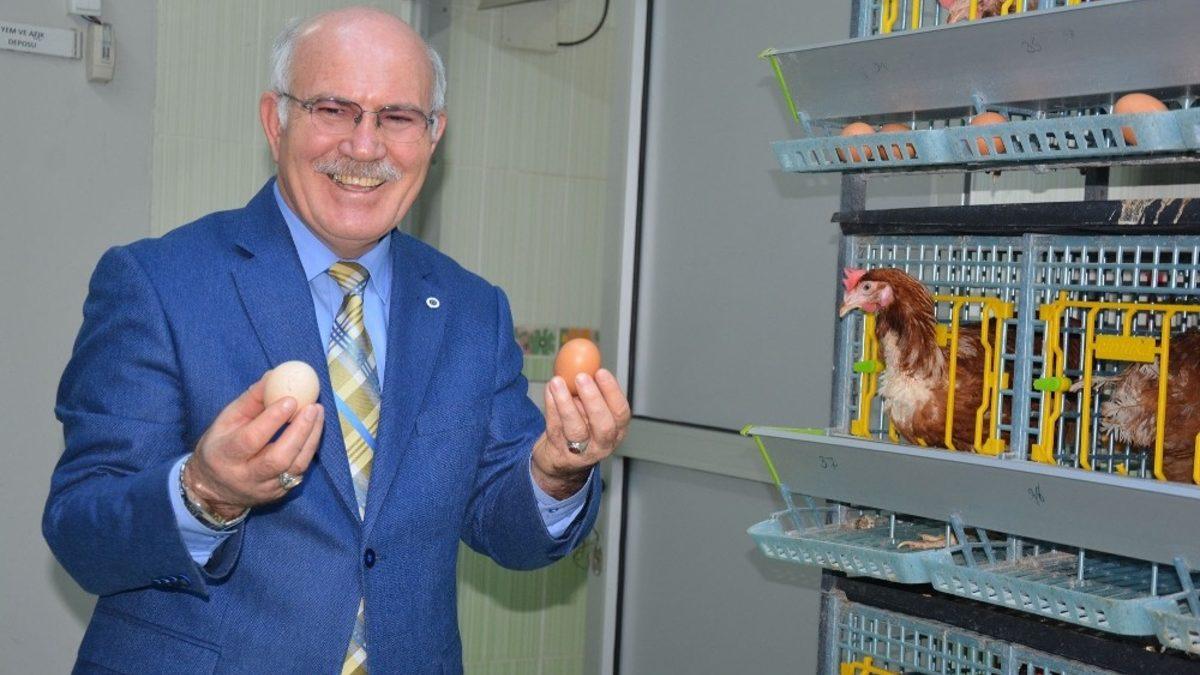 Uşak Üniversitesinin her geçen gün yeni bir projeye imza attığını söyleyen Uşak Üniversitesi Rektörü Prof. Dr. Ekrem Savaş ; “projelerimizden bir tanesi de tavuklar ve yumurtalar üzerinde gerçekleşen bir proje. Aynı zamanda civciv üretme ünitemizde var. Burada tavuklarımızdan elde ettiğimiz yumurtaları aynı zamanda biz döner sermaye üzerinden değerlendirerek buranın giderlerine de katkı sağlıyoruz. Tabi ki üniversitenin temel amaçlarından bir tanesi iyi, kaliteli insan yetiştirmek, çağı yakalayabilen insan yetiştirmek. Dolayısıyla Ziraat Fakültesi öğrencilerimizin ortam içinde yetişmesi gerekiyor, tavuğu, civcivi, yumurtayı görmesi gerekiyor. Burada bunların üretimi noktasında neler yapılması gerektiğini görüyor ve daha sonraki hayatlarında da bunları devam ettiriyorlar. Tabi hayvan yaşamın bir parçası. Televizyonda izliyoruz ceylan kaçıyor aslan kovalıyor, ceylan yaşamak için kaçıyor, aslan hayatını devam ettirmek için koşuyor. Dolayısıyla buradaki tavuklarımız da bize daha fazla yumurta vermek için koşuyorlar. Aynı zamanda bıldırcın üzerine araştırmalarımız da var, şu an bıldırcın yok ama yakın zamanda hem yumurtasını hem bıldırcını üreteceğiz.” Dedi.