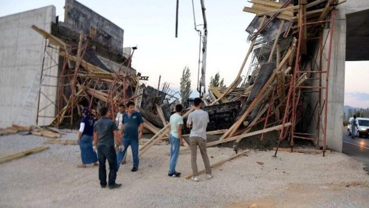 Konya’nın Seydişehir ilçesinde, üst geçit inşaatında beton döküldüğü sırada kalıpların çökmesi sonucu 4 işçi yaralandı.Olay, saat 19.00 sıralarında Seydişehir Antalya Çevre Yolu Taşağıl Mahallesi yol ayrımında yapımı devam eden üst geçit inşaatında meydana geldi. Edinilen bilgiye göre, üst geçit inşaatında kalıpları hazırlayan işçiler beton döktükleri sırada ağırlığa dayanamayan kalıplar çöktü. Olayı gören vatandaşların haber vermesi üzerine olay yerine çok sayıda ambulans ve kurtarma ekibi sevk edildi. Kalıpların üzerinde bulunan ve çökme sonucu yaralanan 4 işçi itfaiye ekipleri ve vatandaşların yardımı ile göçük altından çıkartıldı. Yaralılar Mustafa Asıltürk (29), Halil Çakır (45), Mehmet Çakır (18) ve Fatih Atalay (37) ambulanslarla Seydişehir Devlet Hastanesi’ne kaldırılarak tedavi altına alındı. Hastaneye kaldırılan yaralıları ziyaret den Seydişehir Kaymakam Tuncay Sonel de, geçmiş olsun dileklerinde bulundu.Olayla ilgili soruşturma devam ediyor.