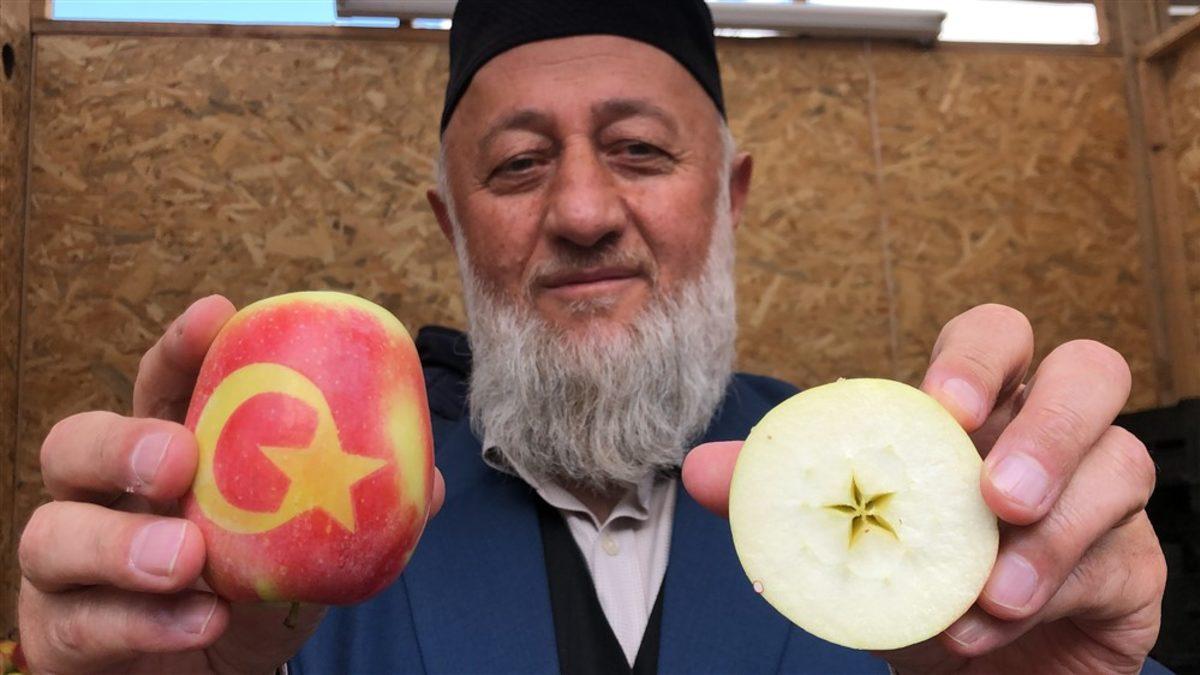 Uyguladığı yöntemle ay-yıldızlı elma üretti! Siparişlere yetişemiyor