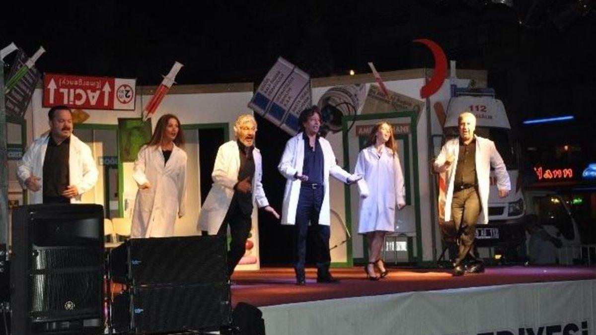 Süheyl-Behzat Uygur kardeşler “Hassta etme adamı” adlı tiyatro oyunlarını Kuşadası’nda sahneledi.Kuşadası Belediyesi Kültür Sanat etkinlikleri çerçevesinde, İsmail Cem Barış ve Dostluk Meydanı’nda sahnelenen oyun vatandaşı kahkahaya boğdu. Tatilcilerin de ilgi gösterdiği oyunu izleyenler arasında Kuşadası Belediye Başkanı Özer Kayalı ve eşi Nil Kayalı da yer aldı.