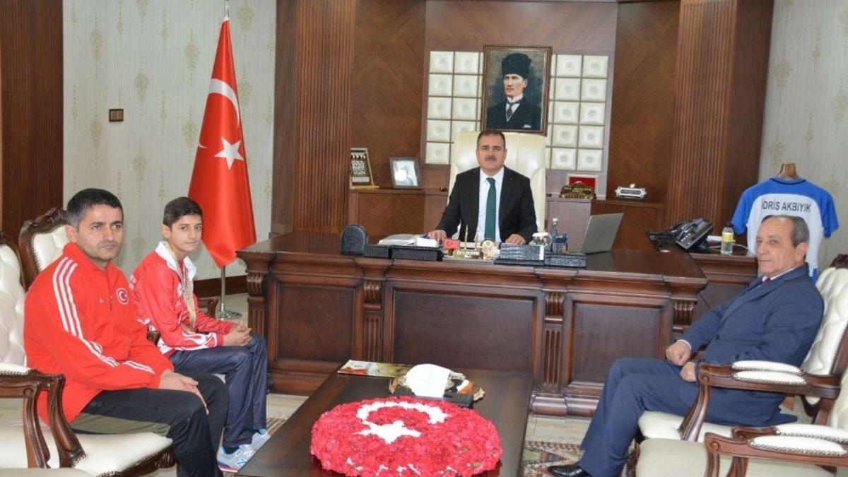 Vali Akbıyık, Hakkâri Gençlik ve Spor İl Müdür Vekili Yaşar Koparan ve antrenörü Özgür Dalar ile birlikte kendisini ziyaret eden sporcuyu tebrik ederek altınla ödüllendirdi. Bir süre sohbet ettiği öğrenciye başarılarının devamını dileyen Vali İdris Akbıyık, 26 Kasım-1 Aralık tarihleri arasında Ankara’da düzenlenen Bir Kuşak Bir Yol İpek Yolu 4. Balkan Açık Wushu Kung Fu Şampiyonasına katılan Birhat Düzen’in 35 kiloda Balkan birincisi olduğunu söyledi. Vali Akbıyık, "Sporcumuzu tebrik ediyoruz. Hakkâri’mizden hakikaten son zamanlarda birçok Türkiye birincileri, Avrupa birincileri ve dünya şampiyonları çıkıyor. İşte muay thai ve diğer spor dallarında olduğu gibi Wushu Kung Fu Şampiyonasında da sporcumuz Birhat Düzen 35 kiloda birinci oldu. Hakkâri’nin genç nüfusu hakikaten sporda özellikle yeteneklidir. Bizim yaklaşık 10 bin civarında sporcumuz var. Bunlardan bin 200’ün üzerinde lisanslı sporcu. Biz Hakkâri Valiliği ve Hakkâri Belediye Başkanı olarak çocuklarımıza, gençlerimize her türlü desteği veriyoruz. Özellikle de tesis anlamında. Geçtiğimiz günlerde Gençlik ve Spor Bakanımız ile yaptığımız görüşme sonucunda Hakkâri merkezinde, 4 ilçemizde ve 3 beldemizde en az iki tesis yapacağız inşallah. Bunların toplam bedeli 41 milyon 500 bin lira. Hakkârili her şeyin daha güzelini hak ediyor. Emniyet Müdürlüğümüzün Polis Gücü Spor Kulübü var, onların da binin üzerinde sporcusu var. Ayrıca Kadınlar 1. Ligi’nde mücadele eden bayan futbol takımımız var. Engelli basketbol takımımız 3. Ligde mücadele ediyor. Yani Hakkârili spora ilgi duyuyor, sporu seviyor, teşvik ediyor, destekliyor. İnşallah hem amatör hem de profesyonel anlamda spor Hakkâri’de daha da yaygınlık kazanacak ve daha başarılı ve güzel sonuçlar alacağız" şeklinde konuştu.