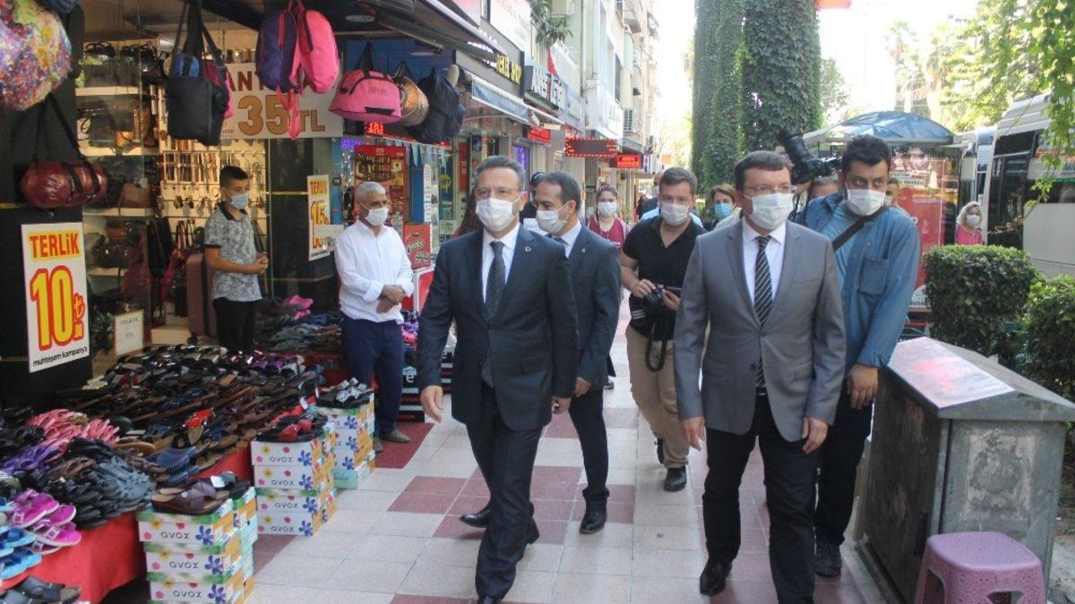Aydın’ın Efeler ilçesinde Vali Hüseyin Aksoy başkanlığında yapılan denetimlerde, işletmeler ve vatandaşlar sosyal mesafe ve maske konusunda uyarıldı.