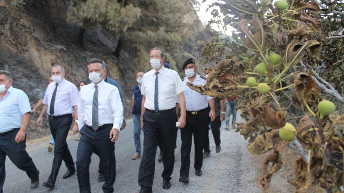 Yangında zeytin ve incir başta olmak üzere birçok tarımsal potansiyelin zarar gördüğünü ifade eden Vali Aksoy; “Bu yangına müdahale amaçlı özellikle 1 uçak, 5 helikopter, 22 arazöz, çeşitli iş makinaları ve 100’e yakın personel ile müdahalede bulunuldu. Buradaki temennimiz evlerimize zarar vermeden bu olayın atlatılmasıydı. Yangın ile mücadelede görev alan bütün arkadaşlarımıza teşekkür ediyorum. En büyük tesellimiz bir can kaybının yaşanmamasıdır, yerleşim yerine bu yangının ulaşmamasıdır. Bu anlamda önemli bir çalışma ortaya konmuştur. Devletimizin bütün kurumları bu noktada sizlerin yanındadır, yanında olacaktır. Yapılabilecek çalışmaları arkadaşlarımız ortaya koyacak ve imkanlar ölçüsünde bu çalışmalar bundan sonra yerine getirilecektir. Tekrar geçmiş olsun” dedi.