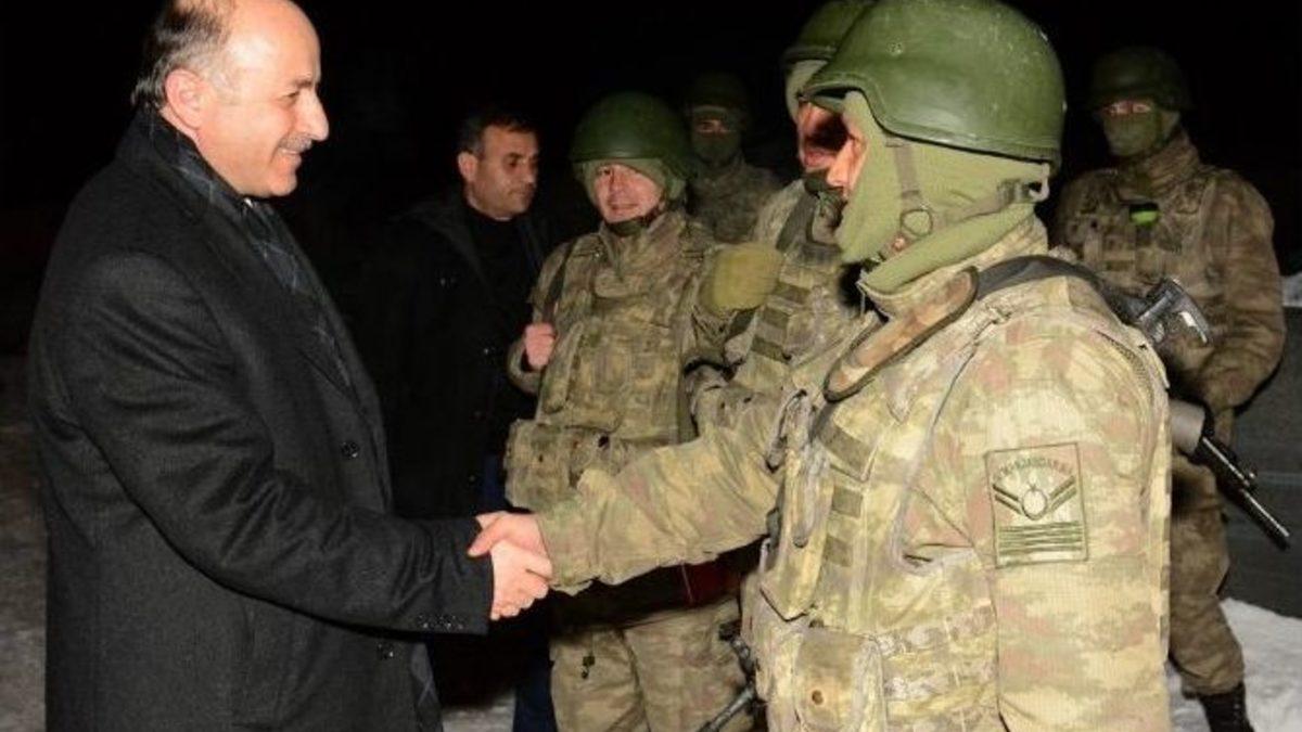 Erzurum Valisi Seyfettin Azizoğlu, Erzurum-Muş ve Erzurum-Kars yolu üzerinde bulunan üç kontrol noktasını ziyaret ederek, eksi 25 derecede soğukta görev yapan polis ve askerlere tatlı ikramında bulundu.İlk ziyaretini geçtiğimiz günlerde Erzurum-Artvin yolu üzerinde bulunan polis kontrol noktasına yapan Vali Azizoğlu, ziyaretlerine devam ediyor. Akşam saatlerinde Erzurum-Muş ve Erzurum-Kars yolu üzerinde bulunan üç kontrol noktasına giden Vali Azizoğlu, buradaki polis ve askerlere kendi eliyle tatlı ikramında bulundu. Güvenlik güçleri ile bir süre sohbet ederek sorunlarını dinleyen Azizoğlu, kontrol noktalarında ki eksikliklerin giderilmesi için de yetkililere talimatlar verdi.İl Jandarma Komutanı Kıdemli Albay Mustafa Çelik’in eşlik ettiği ziyaretleri güvenlik güçlerine moral vermek adına gerçekleştirdiklerini dile getiren Vali Azizoğlu, "Bu soğuk havalarda vatan nöbeti tutan güvenlik güçlerimiz ile aynı havayı teneffüs etmek için buradayız. Hava sıcaklığı yaklaşık sıfırın altında 25 derece olan şehrimizde polisimiz ve askerimiz vatandaşımızın güvenliğini sağlamak için vatan nöbetini tutmaya devam ediyor. Biz de bugün güvenlik güçlerimiz ile aynı havayı teneffüs ederek, bu kutsal görevlerinde onlara moral vermek adına buradayız. Bundan sonra da ziyaretlerimize devam edeceğiz" diye konuştu.