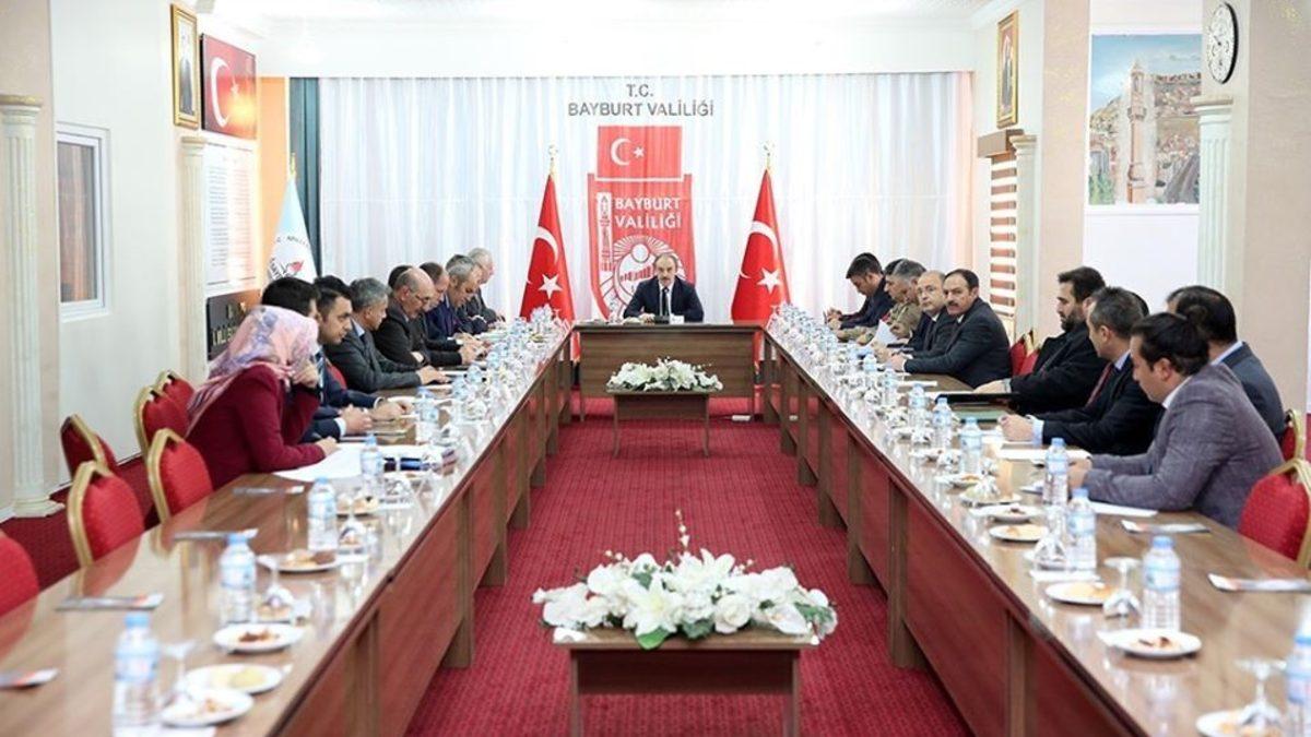 Vali Cüneyt Epcim başkanlığındaki toplantıya Belediye Başkan Vekili Nesimuttin Selçuk, Cumhuriyet Başsavcısı Vekili Alper Çevik, Bayburt Üniversitesi Rektörü Prof. Dr. Selçuk Coşkun, Vali Yardımcısı Halit Benek, Aydıntepe Kaymakamı Mustafa Akın, Demirözü Kaymakamı Ömer Coşkun, İl Jandarma Komutanı Jandarma Albay Halil Murat Bilgiç, İl Emniyet Müdür Vekili Murat Güney ile ilgili kurul üyeleri katıldı.