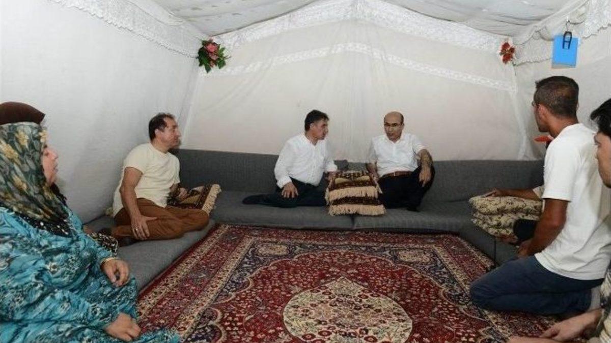 Adana Valisi Mahmut Demirtaş, Suriyeli sığınmacıların barındığı Çadırkent’te denetim ve incelemelerde bulunarak, yetkililerden bilgi aldı.Vali Yardımcısı Mustafa Aydın, Sarıçam İlçe Kaymakamı Ali Murat Kayhan, AFAD İl Müdürü Gültekin Genç, İl Milli Eğitim Müdürü Turan Akpınar ve Göç İdaresi İl Müdürü Hüseyin Çil’in de hazır bulunduğu incelemeler sırasında, Çadırkent’te yapılan çalışmaları ve genel durumu yerinde inceleyen Vali Demirtaş’a, Çadırkent Merkez Yöneticilerince brifing verildi. Verilen bilgileri ve yapılan çalışmaları dinleyen Vali Mahmut Demirtaş, merkez yöneticileri ile ilgili kurum ve kuruluş temsilcilerine çadır kenttekilerin yanı sıra dışarıda barınan Suriyeli sığınmacıların da sorunlarının çözümü noktasında gerekli çalışmaların yapılması talimatı verdi.“SIĞINMACILARA SAHİP ÇIKMAK İNSANLIK GÖREVİDİR”Vali Mahmut Demirtaş, Çadırkent ziyaretinde gıda tarım ve hayvancılık il müdürlüğü ve halk eğitim merkezine bağlı ziraat mühendislerince hem sebze ve meyve üretilen hem de Suriyeli sığınmacılara uygulamalı eğitim verilen tarım alanı ile market ve acil polikliniğinde incelemelerde bulundu. Burada üretilen çeşitli sebze ve meyvelerin Çadırkent sakinlerine dağıtılmasının, tarım eğitimi uygulamasının farklı bir güzel sonucu olduğunu kaydeden Vali Demirtaş, bu uygulamadan dolayı emeği geçenlere teşekkür etti.Ülkelerindeki iç savaştan kaçarak Türkiye’ye sığınan Suriyeli sığınmacılara sahip çıkmanın bir insanlık görevi olduğunu ifade eden ve Çadırkent yöneticilerine çalışmalarında başarılar dileyen Vali Mahmut Demirtaş’ın inceleme ziyareti, Suriyeli sığınmacılar ile sohbet edip, talep ve beklentilerini dinlemesiyle sürdü.