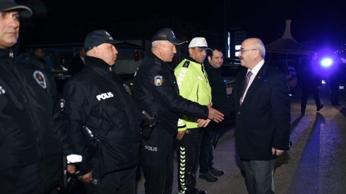 Aydın Valisi Yavuz Selim Köşger, yeni yılın ilk dakikalarında halkın huzur ve güvenliği için denetimlerini aralıksız olarak sürdüren güvenlik güçlerini ziyaret etti.