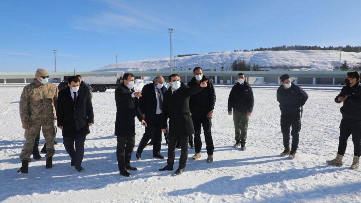 Öksüz, yapımı tamamlanma aşamasında olan “Sarıkamış Allahuekber Dağları Milli Parkı İdare ve Ziyaretçi Tanıtım Merkezi” ile “Sarıkamış Gençlik Merkezi”ne gelerek burada yürütülen çalışmalarla ilgili Kaymakam Recep Koşal ve ilgili firma yetkilisinden bilgiler aldı.