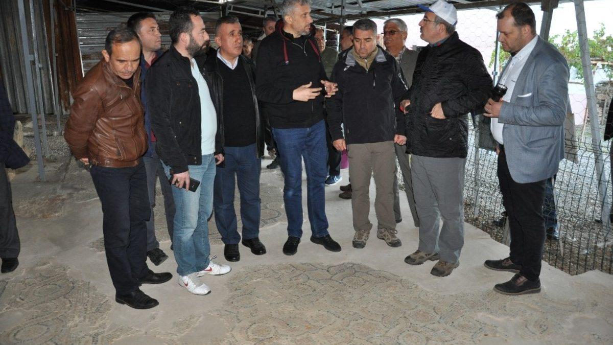 Kütahya Valisi Ömer Toraman, Simav ilçesinde yanan evin enkazı altında ortaya çıkan mozaikli evde incelemelerde bulundu.