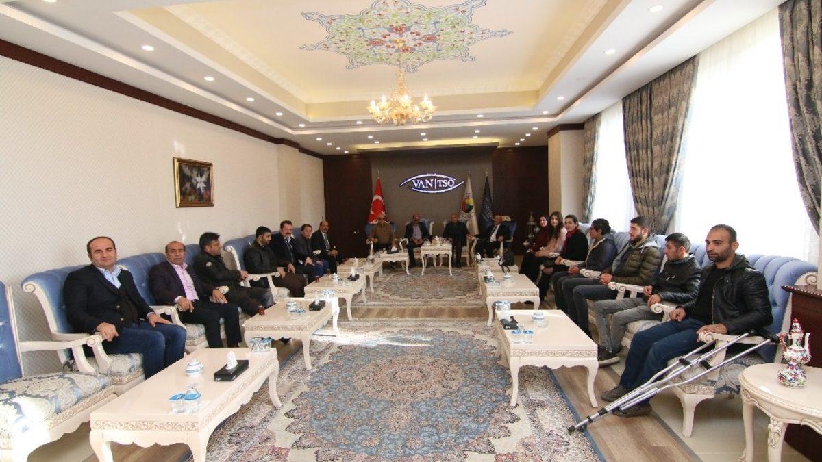 Van TSO Yönetim Kurulu Başkan Yardımcısı Fevzi Çeliktaş ve Şefik Eren ile Yönetim Kurulu Üyesi Serdar Balandi, Bedensel Engelliler Derneği Van Şube Başkanı Abidin Kasapoğlu, Van 6 Nokta Görme Engelliler Spor Kulübü Başkanı Mahir Tan ve Görmeyenler Kültür ve Birleşme Derneği Van Şube Başkanı Osman İnci ile bir araya geldi. Ziyarette engellilerin yaşadığı sıkıntıları dile getiren başkanlar, bu konuda kendilerinden destek istedi.