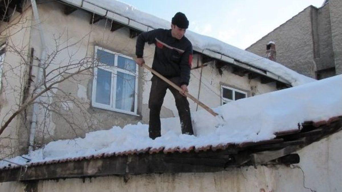 Kütahya’nın Hisarcık ilçesinde yoğun kar yağışı sonrası vatandaşlar kar temizleme telaşına düştü.Vatandaşlar, çökme tehlikesi ve kayma tehlikesine karşı alçak çatılardaki karları temizlemeye çalışırken, bazıları da ellerinde küreklerle kendilerine ve araçlarına yol açmak için evlerinin önüne yığılan karları temizlemek için uğraş veriyor. (MA-EFE)