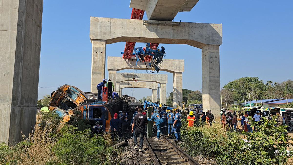 Yüksek hızlı demir yolu inşaatında kullanılan bir vinç, başkent Bangkok'tan Ubon Ratchathani eyaletine giden seyir halindeki trenin üzerine düştü.