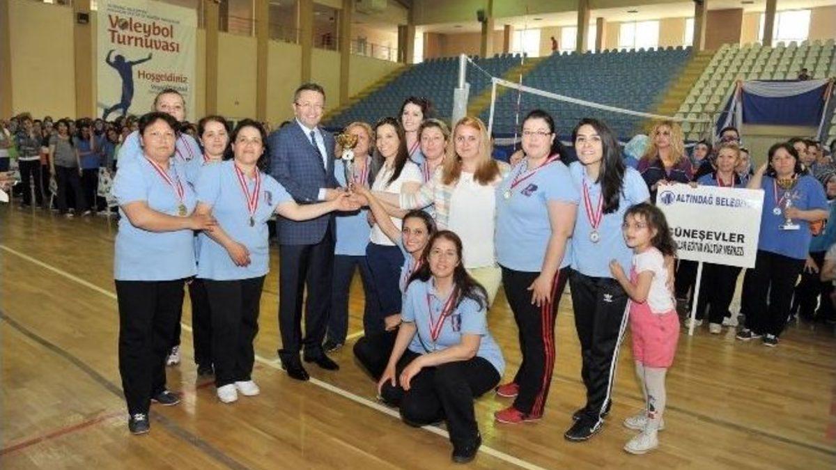Altındağ Belediyesi tarafından bu yıl 6’ncısı düzenlenen Kadın Eğitim ve Kültür Merkezleri Arası Voleybol Turnuvası sona erdi. 24 Kadın Eğitim Kültür Merkezi’nden 300 sporcunun katıldığı turnuva büyük çekişmeye sahne oldu. 24 takım arasından sıyrılan Örnek Kadın Eğitim ve Kültür Merkezi şampiyonluğunu ilan etti.Karapürçek Spor Salonu’nda oynanan final müsabakasında Örnek Kadın Eğitim Kültür Merkezi ile Güneşevler Kadın Eğitim Kültür Merkezi karşı karşıya geldi. Örnek Kadın Eğitim Kültür Merkezi 25-14 ve 26-16’lık setlerle karşılaşmadan 2-0 galip ayrıldı. Turnuvanın ikincisi Güneşevler Kadın Eğitim Kültür Merkezi olurken, üçüncülük Karapürçek 1’e gitti. Önder Kadın Eğitim Kültür Merkezi ise kürsünün dördüncü sırasında yer aldı. Altındağ Belediye Başkanı Veysel Tiryaki, dereceye giren merkezlere kupalarını verdi.Başkan Tiryaki, yaptığı açıklamalarda sporun önemini vurguladı. Dünya üzerinde söz sahibi olan toplumlarda spora büyük önem verildiğine dikkat çeken Başkan Tiryaki, Altındağ’da sportif faaliyetlerin giderek arttığını söyledi. Başkan Tiryaki, özellikle çocuklara ve kadınlara seslenerek sporun her alanıyla uğraşmalarını istedi. Spor yaparak sağlıklı bir hayata kavuşulacağını da ifade eden Başkan Tiryaki, Altındağ Belediyesi olarak bu tür faaliyetlere önem verdiklerini belirtti. Başkan Tiryaki sözlerini şöyle sürdürdü:“Turnuvanın sonucu ne olursa olsun kazanan her zamanki gibi yine Altındağlı kadınlar oldu. Bizim için sonuçtan ziyade kadınların gösterdiği özgüven ve medeni cesaret çok önemli. Bu müsabakalarda yer alan tüm Altındağlı kadınları canı gönülden kutluyorum.”“BAŞKANIMIZIN BİZDE ÇOK EMEĞİ VAR”Örnek Kadın Eğitim Kültür Merkezi üyelerinden İkbal Darılmaz turnuva sayesinde arkadaşlık bağlarının güçlendiğini belirterek, “Onlar bizim rakibimiz değil, arkadaşımız, kardeşimiz" dedi. Centilmence geçen bir turnuvayı geride bıraktıklarını aktaran Darılmaz, tüm arkadaşlarının başarılı bir performans sergilediğini dile getirdi. Darılmaz, kendilerine bu imkanı sunan Altındağ Belediye Başkanı Veysel Tiryaki’ye tüm Altındağlı kadınlar adına teşekkür etti.Turnuvada ikincilik elde eden Güneşevler Kadın Eğitim Kültür Merkezi üyelerinden Seher Ilıca ise şöyle konuştu:“Altındağlı kadınların neler yapabileceğini artık herkes biliyor. Daha düne kadar evinden dışarı çıkmayan arkadaşlarımız bugün burada aslan gibi mücadele etti. Sadece spor alanında değil tiyatroda, resimde, edebiyatta, el becerisi gerektiren tüm branşlarda söz sahibiyiz. Bu durumun ortaya çıkmasında Başkanımız Veysel Tiryaki’nin büyük emeği var. Kendisinden Allah razı olsun.”