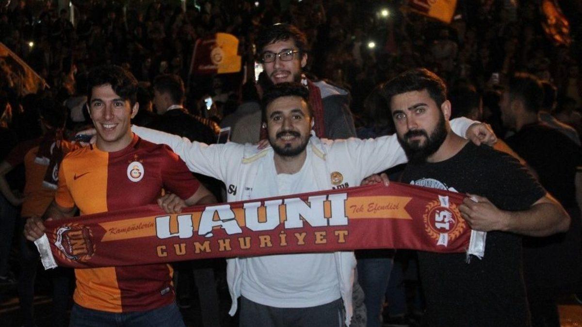 Spor Toto Süper Lig 2017-2018 sezonunda Galatasaray’ın şampiyonluğunu ilan etmesiyle Sivas’ta sokağa dökülen taraftarlar, şampiyonluk sevincini coşkuyla yaşadı.Süper Lig’in son haftasına lider giren Galatasaray, deplasmanda Göztepe’yi Gomis’in attığı golle 1-0 mağlup ederek 75 puanla şampiyonluğunu ilan etti. Maçın bitiş düdüğüyle beraber Galatasaraylı taraftarlar sokağa döküldü. Yaklaşık 2 bin kişilik taraftar grubu yağan yağmura aldırış etmeden Cumhuriyet Meydanı’nda bir araya gelerek şampiyonluğu kutladı. Meşaleler yakan taraftarlar tezahüratlarla şampiyonluk sevincini doyasıya yaşadı. Bazı sarı-kırmızılı taraftarlar da araçlarıyla korna çalarak konvoy oluşturdu ve şehir turu attı.