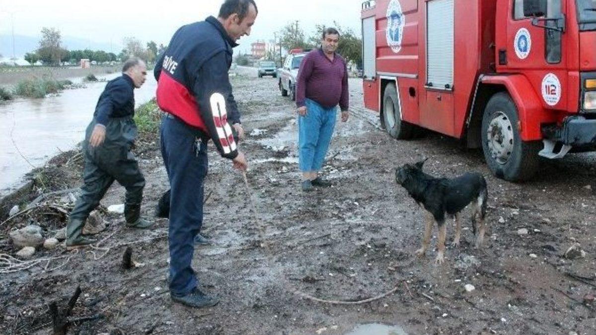 Antalya’nın Kumluca ilçesinde gece boyunca yağan sağanak yağmurun ardından Gavur Çayı yükselirken, dere yatağında mahsur kalan sokak köpeği için itfaiye ekipleri seferber oldu.Kumluca’da gece boyunca aralıklarla yağan sağanak yağmur ilçe içinden geçen Gavur Çayı’nın debisinin yükselmesine neden oldu. Sel sularıyla dere yatağındaki suyun yükselmesi sonucu bir sokak köpeği mahsur kaldı. Gavur Çayı içinde sel sularının getirdiği ve dere yatağında adacık oluşturan çöplerin üzerinde kurtarılmayı bekleyen köpeği gören vatandaşlar itfaiye ekiplerini aradı. İhbar edilen adrese gelen Büyükşehir Belediyesi Kumluca İtfaiyesi ekipleri, köpeği bulunduğu noktadan kurtarmak için seferber oldu.İtfaiye ekipleri önce köpeğin bulunduğu noktaya merdiven uzatarak, köpeğin merdiven üzerinden geçebileceğini düşündü ancak bu yöntem başarılı olmadı. Beline halat bağlanan itfaiye eri merdiven yardımıyla köpeğin bulunduğu noktaya kadar giderek, köpeğin boynuna ip bağladı. Köpek dere yatağının dışına halat yardımı ile çekilerek kurtarıldı.Kumluca Belediyesi İtfaiye Eri Durmuş Kızıltepe, "Vatandaşlarımızdan gelen bir ihbarı değerlendirdik. Gece boyunca yağan sağanak yağmur nedeniyle Gavur Çayı’nın suları yükselmesi sonucu dere yatağında mahsur kalan köpeği kurtardık" dedi.
