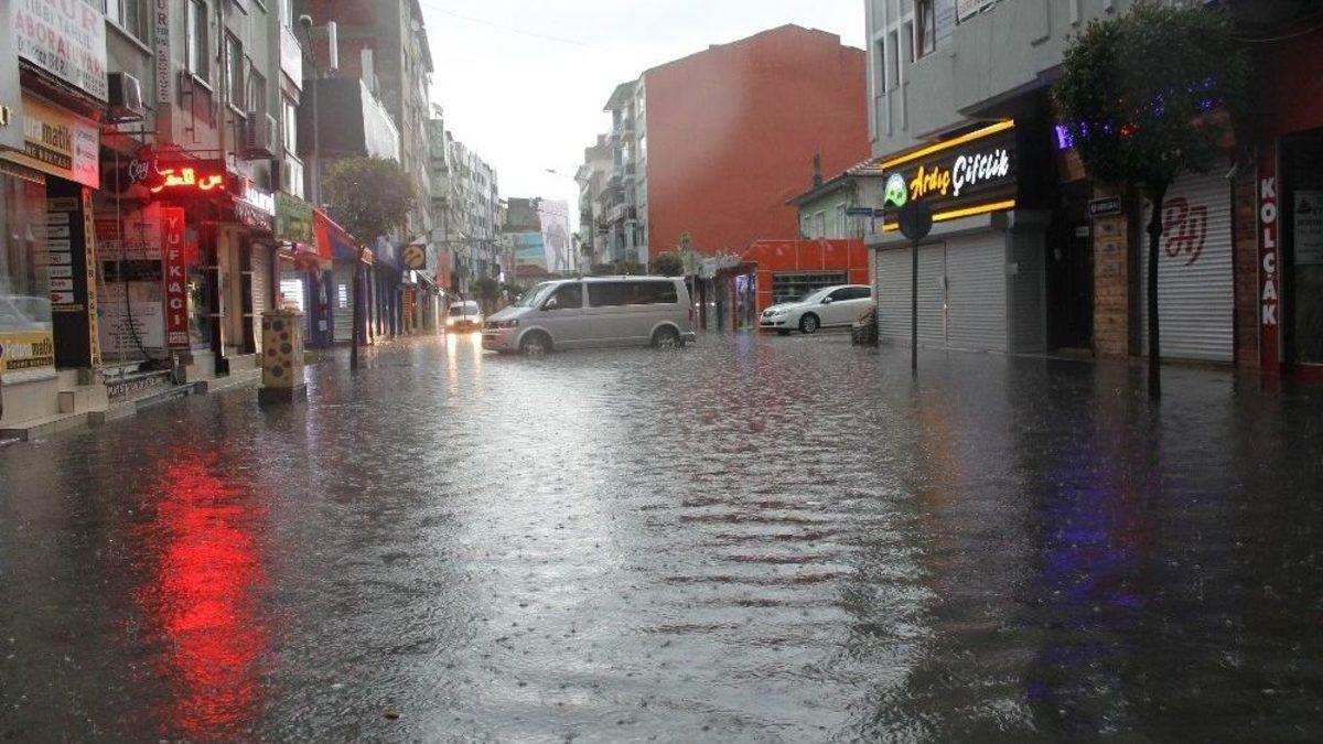 Yalova’da sabah 06:30 sularında başlayan sağanak yağış kenti uykuda yakaladı. 30 dakika süren yağışta kentin birçok noktası sele teslim olurken onlarca ev ve iş yerini su bastıMeteorolojinin uyarısı gerçek oldu ve Yalova’da sağanak yağış etkili oldu. Sabah erken saatlerde başlayan yağış şehrin yüksek kesimlerinden toplanarak gelen sular nedeniyle kısa sürede sele dönüştü. Kentin ana arterleri Venedik’i aratmayacak bir görüntüye bürünürken cadde üzerindeki iş yerleri ise sular altında kaldı. Esnaflar iş yerlerine giren suları sadece seyretmekle yetindiler. Bazı esnaflar ise caddeden geçen araç trafiğini kesmek ve suların dükkanlarına daha da fazla girmesini engellemek için caddenin ortasına araç çekerek trafiğe kapadı.Esnaflardan bazıları ise şehrin kanalizasyon alt yapısının yeterli olmadığını dile getirerek Yalova Belediyesi’ne yüklendi. Yağmurun dinmesinin ardından dükkanları sular altında kalan esnaflar su tahliye çalışması yaptılar.Sel nedeni sabah erken saatlerde aracına binen bazı vatandaşlar ise araçlarında mahsur kaldı.