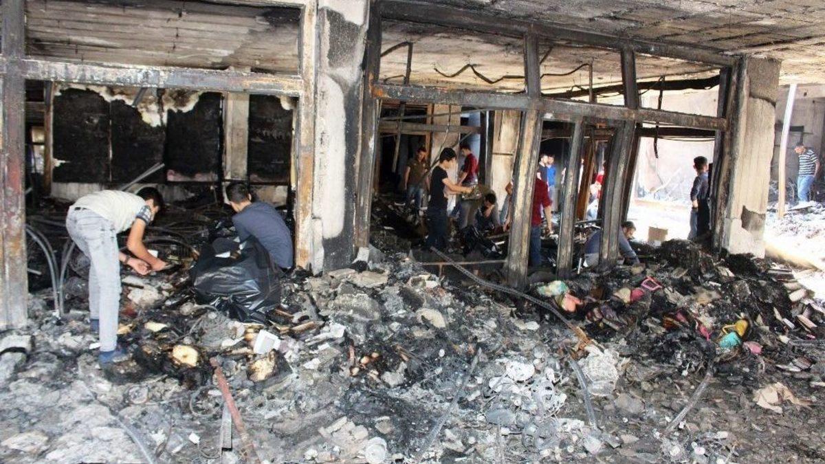 Şanlıurfa’da içerisinde 100’den fazla iş yerinin bulunduğu Dünya İş Merkezi’nde çıkan yangında 10 iş yeri küle döndü.Edinilen bilgiye göre yangın, dün akşam saatlerinde Eyyübiye ilçesine bağlı Yusuf Paşa Mahallesi’ndeki Dünya İş Merkezi’nde çıktı. 100’den fazla işletmenin faaliyet gösterdiği Dünya İş Merkezi’nde çıkan yangının ardından hasar tespit çalışmalarına başlandı. İş yerlerine gelen vatandaşlar, ortaya çıkan manzara karşısında büyük üzüntü yaşarken, bazı iş yeri sahipleri yangından kurtarılan eşyalarını başka yerlere taşıdı. Yangın nedeniyle 10’u aşkın iş yerinin tamamen yandığı, 20’ye yakınının da zarar gördüğü iş merkezinde temizlik çalışması sürüyor.İşletmesinin tamamı hasar gören İbrahim Halil Taplamacı, tüm iş merkezindeki hasarın ise bir milyon lira civarında olduğunu söyledi.