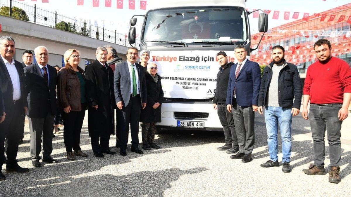 Elazığ’ın Sivrice ilçesinde meydana gelen 6,8 büyüklüğündeki depremin ardından Çukurova Belediyesi’nin açtığı kampanyada toplanan giysi, kuru gıda, temizlik malzemelerini taşıyan tır Başkan Soner Çetin tarafından uğurlandı.