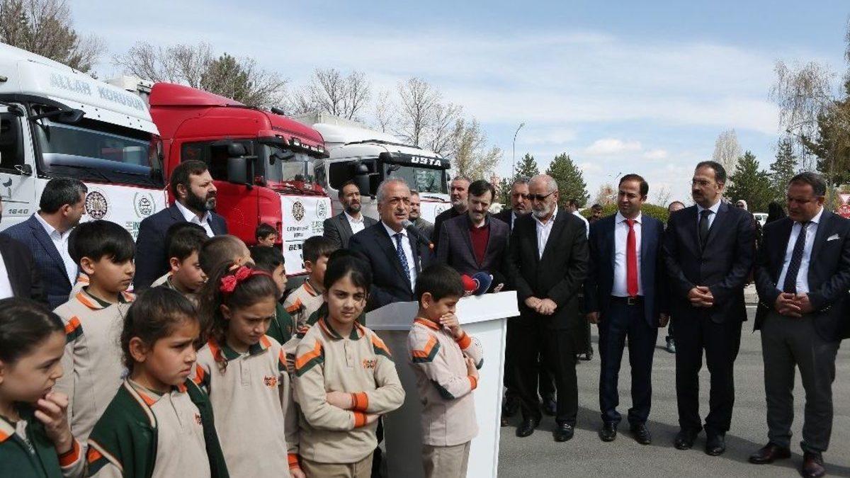 Atatürk Üniversitesi ve İHH İnsani Yardım Vakfı tarafından organize edilen yardım kampanyasında toplanan gıda ürünleriyle temel geçim malzemelerinin bulunduğu tırlar düzenlenen tören sonrasında Suriye’ye doğru hareket etti.Atatürk Üniversitesi Rektörlük binası önünde gerçekleşen törene; Atatürk Üniversitesi Rektörü Prof. Dr. Ömer Çomaklı ve üst yönetimi, Erzurum Sivil Toplum Platformu (ESTP) Başkanı A. Mustafa Güvenli, İHH İnsanı Yardım Vakfı Erzurum Şube Başkanı Cumhur Hakkı Çankaya ile dernek üyeleri ve öğrenciler katıldı.“Ümmete ve İnsanlığa Kollarını Açan Bir Tavır Sergiliyoruz”Suriye’nin Doğu Guta Bölgesi’ndeki halkın mahrumiyet içerisinde ve çok zor şartlar altında hayatlarını idame ettirdiklerini dile getiren Atatürk Üniversitesi Rektörü Prof. Dr. Ömer Çomaklı: “Ümmetin kanayan yaralarından biri olan komşumuz ve kardeşimiz Suriye halkı için, özellikle Doğu Guta’dan tehcir edilen ve mülteci kamplarına yerleştirilen kardeşlerimiz için İHH ile birlikte yardım kampanyası düzenledik. Bu yardıma öncülük ettikleri için İHH İnsanı Yardım Vakfı Erzurum yönetimine teşekkür ediyoruz. Üniversitenin sadece bir eğitim kurumu olmadığını gösteren ve ümmete, insanlığa kollarını açan bir tavır sergilediğimizi belirtmek istiyorum. Allah yapılan yardımları makbul ve kabul eylesin.” ifadelerini kullandı.Rektör Çomaklı ayrıca, programa katılan Kocatepe İlköğretim Okulu öğrencilerine desteklerinden dolayı teşekkür ederek hediye verdi.Son dönemde savaşın en büyük dramının Doğu Guta’da yaşandığına dikkati çeken İHH İnsanı Yardım Vakfı Erzurum Şube Başkanı Cumhur Hakkı Çankaya: “Sekiz yıldır süren Suriye’deki iç savaşın başından itibaren sivilleri hedef alan rejim son 2-3 aydır Doğu Guta’ya saldırılarını yoğunlaştırdı. Muhaliflerin kontrolündeki Doğu Guta’da 400 bin kişi 5 yıldır abluka altında yaşıyor. Şimdiye kadar ülkenin kuzeyindeki bölgelere giriş yapan Doğu Gutalıların sayısı 65 bini aştı. Tehcir edilenlerin 2/3 si çocuklar ve kadınlardan oluşmaktadır. Sekiz yıldır Suriye halkına sahip çıkan necip milletimiz yine; ’Gün bugündür: Gün ya ölüm ya tehcir kıskacında sıkışmış Doğu Gutalı kardeşlerimize sahip çıkma günüdür.’ diyerek mazlum ve mağdur Suriye halkına sahip çıkmıştır.” dedi.5 Tır Suriye’ye Doğru Yola ÇıktıAtatürk Üniversitesi ve Erzurum İHH öncülüğünde Doğu Guta’dan tehcir edilen bölge halkına yönelik toplanan 30 ton un, 25 ton makarna, 26 ton su, 13 ton patates-sebze-meyve , 10 ton muhtelif kuru gıda, 1000 koli hijyen paketi (çocuk-kadın pedi, şampuan, sabun vb.), 115 yatak, 50 ranza, 100 adet battaniyeden oluşan 5 TIR’lık yardım malzemesi gönderdiklerini belirten Başkan Çankaya: “Bu yardım organizasyonunda desteklerini esirgemeyen başta Rektör Prof. Dr. Ömer Çomaklı olmak üzere Atatürk Üniversitesi çalışanlarına, VUSLATDER’e, Kocatepe, Sabancı, Necip Fazıl İmam Hatip ve Aliya İzzetbegoviç İmam Hatip ortaokullarının öğrencilerine, öğretmenlerine ve idarecilerine şükranlarımızı sunarım.” diyerek sözlerini tamamladı.Yardım tırları, yapılan duanın ardından Suriye’ye uğurlandı.