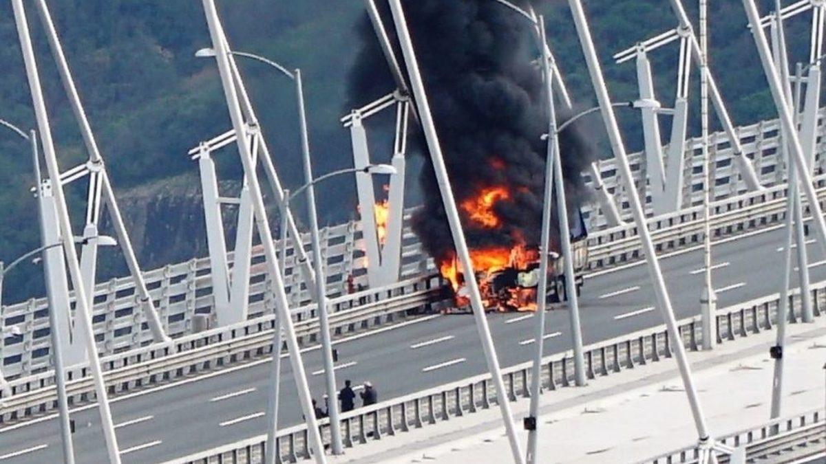 Yavuz Sultan Selim Köprüsü üzerinde bir kamyon alev alev yandı. Yangın nedeniyle köprü trafiği tamamen durdu.Yavuz Sultan Selim Köprüsü üzerinde Anadolu’dan Avrupa’ya geçiş istikametinde lastik yüklü bir kamyonda bilinmeyen bir nedenden yangın çıktı. Kamyon alev alev yanarken, köprüden geçen araç sürücüleri büyük panik yaşadı. Bu sırada köprü tamamen trafiğe kapatıldı. Uzun araç kuyrukları oluştu. Yangın itfaiye tarafından söndürülürken, köprü trafiğe de kısmen açıldı.Ancak bölgede kamyonun kaldırma çalışmaları sürdüğü için trafik yoğunluğu devam ediyor.