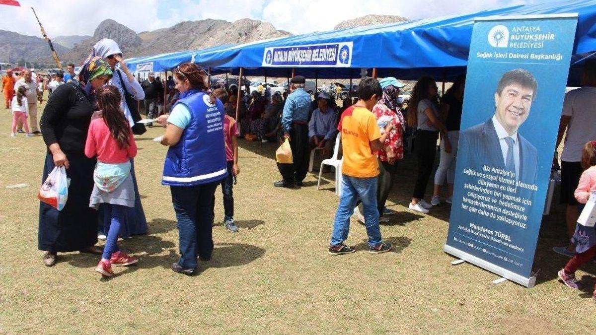 Antalya Büyükşehir Belediyesi ekipleri Gazipaşa’ya bağlı yaylalara sağlık, ağız ve diş sağlığı taraması, sosyal tespit ve mobil kuaför hizmetleri götürdü.Gazipaşa’ya bağlı yaylalardaki çocuk, genç, yaşlı bireylere doktor, hemşire, sosyolog, psikolog ve kuaför hizmeti götüren ekiplerin ilk durağı 1. Toroslar Günnercik Yayla Şenliği oldu. Şenliğin ilk iki gününde 216 kişi sağlık taramasından geçirildi, 3 kişinin sosyal tespiti yapıldı, 352 çocuk ağız ve diş sağlığı taramasından geçirilip diş macunu, diş fırçası, konuyu anlatan broşür ve boyama kitapları hediye edildi. Şenlikte Büyükşehir Belediyesinin en gözde hizmeti ise mobil tır oldu. Günnercik Yaylasında gerçekleştirilen şenliğe civar yaylalar ve Gazipaşa şehir merkezinden 10 bin kişinin üzerinde katılım oldu. Burada mobil tırı ziyaret eden genç, yaşlı ve çocuklardan oluşan 222 kişiye saç kesimi, tıraş, cilt bakımı, el ve ayak tırnakları bakımı konularında hizmet verildi.İkinci etapta 6 yaylaya gidildiGazipaşa için özel bir program hazırlayan Antalya Büyükşehir Belediyesi, aralarında doktor, hemşire, sosyolog, psikolog, kuaför ve yardımcı personel olmak üzere yaklaşık 30 kişilik bir ekip ile ikinci etap programını deniz seviyesinden ortalama bin 850 metre yükseklikteki Belbaşı, Maha, Berem, Yunt, Beyobası ve Cimbiti yaylalarında gerçekleştirdi. Yaylalarda vatandaşlarla bir araya gelen ekip içerisindeki diş doktoru tarafından 212 çocuğa diş temizliği, bakımı ve fırçalama teknikleri uygulamalı anlatılıp diş macunu, diş fırçası, konuyu anlatan broşür ve boyama kitapları hediye edildi. Yine sosyal güvencesi olmayan 25 ihtiyaç sahibi için inceleme yapılıp sosyal kart talebi alındı. Sosyologlar ise evlerde incelemeler yapıp vatandaşların taleplerini yerinde dinledi. Mobil tırda ise genç, yaşlı ve çocuklardan oluşan 247 kişiye saç kesimi, tıraş, cilt bakımı, el ve ayak tırnakları bakımı konularında hizmet verildi. Doktorlar ise 313 vatandaşın sağlık taramasını yapıp gerekli konularda bilgiler aktardı.Büyükşehir Belediyesinin dört günlük Gazipaşa programında 529 kişi sağlık taramasından, 564 kişi ağız ve diş sağlığı taramasından, 469 kişi kuaför hizmetlerinden, 28 kişi ise sosyal tespit hizmetlerinden faydalandırıldı. Hizmetlerini bin 850 metre yükseklikteki yaylalarda bin 590 kişinin ayağına kadar götüren Antalya Büyükşehir Belediyesine mahalle muhtarları da teşekkür etti.