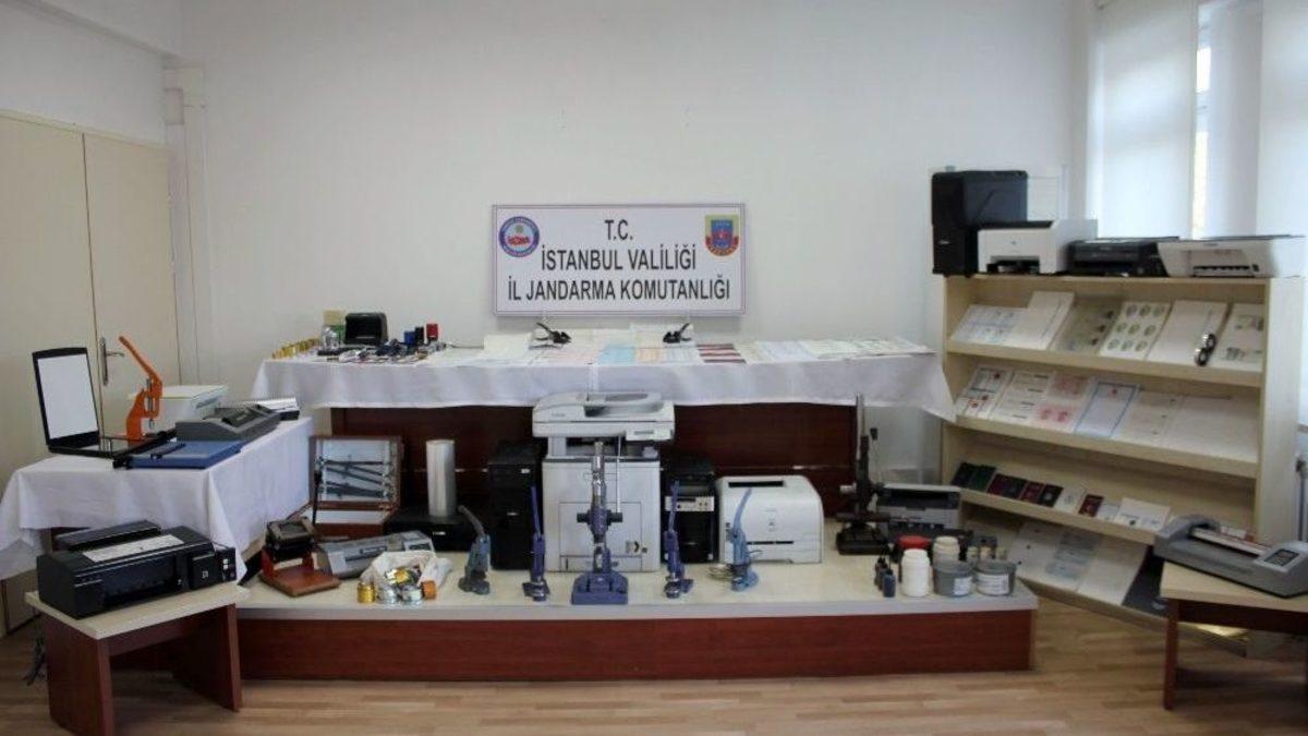 Fetullahçı Terör Örgütü dahil birçok terör örgütü mensubuna sahte pasaport ve belge basan matbaaya İstanbul Jandarması tarafından operasyon gerçekleştirildi. Jandarma yaptığı operasyonda 2 kişiyi gözaltına alırken matbaadaki sahte para, belge ve bunların yapımında kullanılan malzemelerde el konuldu. Operasyonda, yeni tip çipli kimliklerin kullanımı için çipli kartta bulunduğu öğrenilirken baskın anı saniye aniye kameraya yansıdı.İstanbul İl Jandarma Komutanlığı ekipleri, son dönemlerde göçmen kaçakçıları ve aranan şahıslar tarafından sıklıkla sahte belgeler kullanıldığı yönünde alınan istihbaratı değerlendirdi. Jandarma yaptığı çalışmalar neticesinde, Fatih’te 2 şüpheli şahsın, vatandaşları dolandırarak onlara ait kimlik bilgilerini çaldıkları, aranan şahısları ve çalıntı araçların yakalanmasını engelledikleri, yasadışı yollardan ülkeye göçmen girmesini ve tanzim ettikleri sahte pasaportlarla aranan şahısların yurt dışına kaçmalarını sağladıklarını tespit etti. Ayrıca şahısların sahte belgeleri basmak üzere matbaa kullandıkları da tespit edildi. Bunun üzerine tespit edilen matbaaya operasyon düzenlendi. Operasyon anı ise saniye saniye kameralara yansıdı.Ekiplerin yaptığı çalışmada, 200 bin lira değerinde basılmaya hazır sahte paranın yanı sıra, binlerce nüfus cüzdanı, sürücü belgesi, sahte motorlu araç trafik belgesi, ikamet izin kartı ve onlarca sahte resmi belge ele geçirildi.Yasadışı işlerin yapıldığı matbaada yapılan incelemelerde ise baskılar için yazıcılar da ele geçirildi.Yeni tip çipli kimlikleri kopyalama için çip kart temin ettilerYapılan operasyonda bir diğer dikkat çekici nokta ise yeni tip çipli kartlar oldu. Şüphelilerin, yeni tip çipli kimlik kartlarında kullanılmak üzere temin ettikleri çipli kartlara da el konuldu. Ayrıca şahısların, pek çok notere, resmi dairelere ve emniyet müdürlüğüne ait sahte mühür ve soğuk damga da imal ettikleri görüldü.Terör örgütü üyelerine profesyonel hazırlanmış sahte pasaportŞahısların, pasaport ikamet belgeleri ve vizeler ürettikleri, yapılan operasyon ile ortaya çıkarıldı. Öte yandan bu PKK, DEAŞ, FETÖ/PDY, DHKP-C gibi terör örgütü mensubu şahıslara temin ettikleri de ortaya çıkarıldı. Hazırlanan sahte belgelerin ise sınır kapılarında çıplak gözle değil ancak teknik cihazlarla anlaşılacağı kadar profesyonelce tasarladığı da gün yüzüne çıkarılarak bu belgelerin yapımında kullanılan makine ve belgelere de el konuldu.Adli sicil kaydı temiz vatandaşların bilgilerini ele geçirdilerAramalarda, şüpheli şahısların piyasada adli sicil kaydı temiz olan vatandaşlara ait kimlik bilgilerini ele geçirmek suretiyle bu bilgileri piyasaya sürecekleri binlerce sahte nüfus cüzdanında kullanacakları anlaşıldı.Şahıslar sahte paraların yapımı ve seri üretimi için özel kalıplar kullandıkları da Jandarma operasyon ile gün yüzüne çıktı.Belgelerde sahtecilik yapan 2 şahısın ise Jandarma’daki sorgusuna devam edildiği ve çalışmaların çok yönlü sürdüğü öğrenildi.