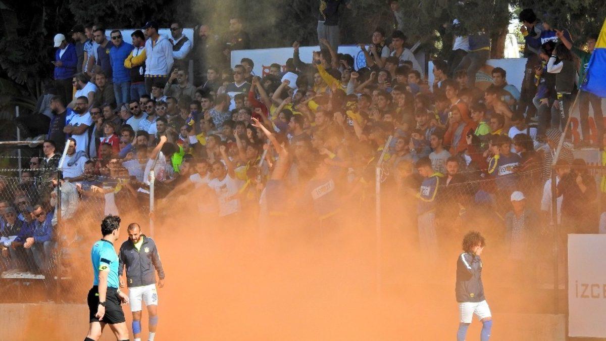 Derbi maçı, Alaçatıspor taraftarlarının sahaya attıkları çok miktardaki meşale nedeniyle 6 dakika geç başladı. Atılan meşalelerin çıkardığı yoğun duman, maçın başlamasına engel oldu.