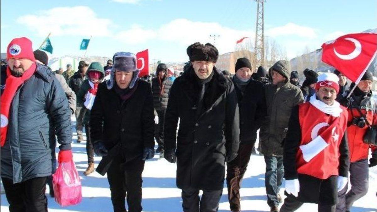Sarıkamış şehitlerini anma etkinlikleri kapsamında, Kars Serhat Boyları Derneği Başkanı Muharrem Yıldız ve Türk Dünyası temsilcileri Sarıkamış şehitleri için 8 km yol yürüyerek, şehitlerin yaşadıklarını hissetti.Sarıkamış Şehitlerini Anma etkinlikleri kapsamında, Kars Serhat Boyları Derneği Başkanı Muharrem Yıldız ve Türk Dünyasından temsilcilerle, Kars’ta bulunan Sarıkamış Alisofu Şehitlik Anıtından, Yukarı Sarıkamış Şehitliğine kadar sekiz kilometre yürüdü. Sıcaklık sıfırın altında 25 dereceyi gösterdiği yolda yürüyerek, şehitlerimizin şehitlerin yaşadıklarını hissetmeye çalışıldı. Yukarı şehitlikte son bulan yürüyüş, etkinlikle devam etti. Etkinliğin bitmesinin ardından Kars Serhat Boyları Başkanı Muharrem Yıldız, Ruslar’ın Türk Esirleri Hapsettiği Nargin Adası’ndan getirdiği toprağı dualar eşliğinde Yukarı Sarıkamış Şehitlik Anıtına döktü.Kars Serhat Boyları Derneği Başkanı Muharrem Yıldız, dün gece Sarıkamış şehitlerinin 101. yılını anmak için Türk Dünyasından 8 temsilci ve 27 öğrenci ile sembolik gece nöbeti tutuklarını belirterek "Şimdi ise 8 kilometrelik yolu yürüdük. Hava çok soğuk. Sıfırın altında 25 derecelerde. Ecdadın 101 yıl önce burada yaşadıklarını hissettik. Onların yürüdüğü yollardan yürüdük’’ dedi.NARGİN ADASINDAN GETİRİLEN TOPRAK ŞEHİTLİĞE DÖKÜLDÜAzerbaycan’ın Nargin Adasından aldığı toprağı şehitliğe döken Başkan Yıldız, ’’Nargin Adasına 101 yıl önce buradan götürülen esir Sarıkamış şehitlerimizden aldığımız toprağı buraya getirdik. Toprağı buradaki silah arkadaşlarıyla buluşturduk. Esir Sarıkamış şehitleriyle, Sarıkamış şehitlerini toprakla bir araya getirmekten huzur duyuyoruz’’diye konuştu.ANZAKLAR GELİYORSA, BİZİM GENÇLERDE GELMELİYıldız, gençlere şöyle mesaj gönderdi: "Sarıkamış uzak değil. Uçak yolculuğuyla iki saat, arabayla 12 saat sürüyor. Anzaklara bakıyoruz, Çanakkale’ye gelirken 1 gün uçak yolculuğu, 1 ayda gemi yolculuğuyla geliyorlar. Anzaklara Çanakkale uzak değilse, Sarıkamış’ta bize uzak olmaması lazım. Anzaklar kahraman dedeleri dedikleri işgalci dedelerini yâd ediyorlarsa bizde bu topraklarımızı vatan eden dedelerimizi yâd etmek için Sarıkamış’a gelelim, onların yaşadıklarını hissedelim."