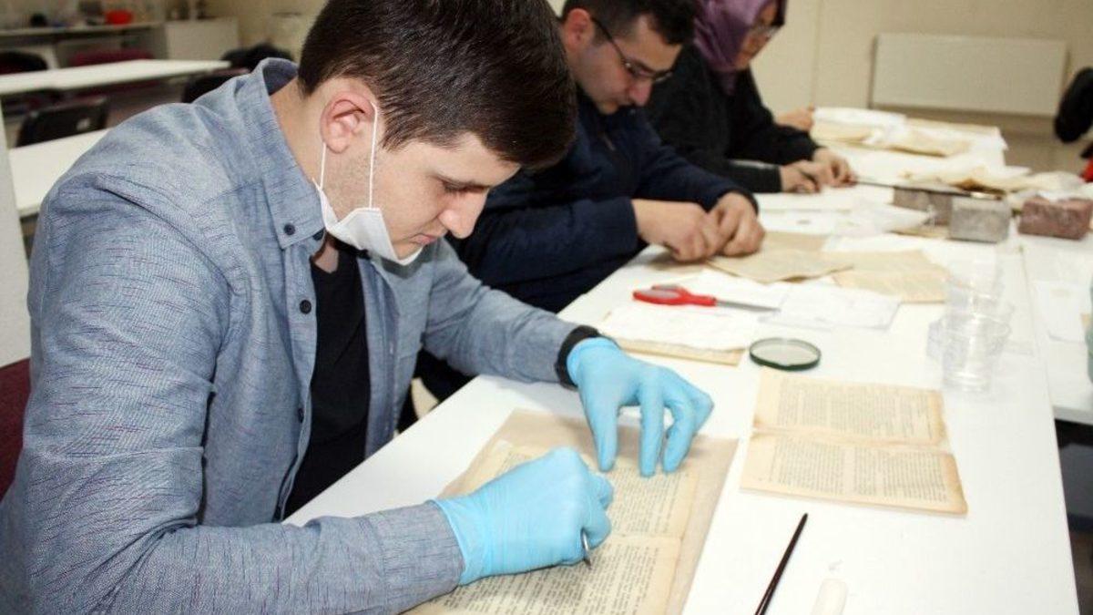Tokat’ta kültürel varlıkları koruma ve onarma projesi kapsamında gönüllü olarak bir araya gelen eğitimciler, yıpranmış yazılı eserleri onararak tekrar kullanılabilir hale getiriyor.Tokat Teknopark’ta bulunan Teknoloji Transfer Ofisi koordinesinde hazırlanan ve Orta Karadeniz Kalkınma Ajansı tarafından desteklenen proje kapsamında gönüllü 13 eğitimci, İstanbul’dan gelen restorasyon uzmanından aldıkları eğitimi pratikte de uygulamaya başladı. Projeyi yürüten Öğretim Görevlisi Serpil Seyfi, yapılan çalışmanın bölgeye de katkı sağlamasını hedeflediklerini vurgulayarak, "Biz projemize eylül ayı gibi başladık. Değerlendirildikten sonra bir haftalık bir süreç talep ettik eğitim için. 6 gündür bu eğitimi sürdürüyoruz. Burada önemli olan da teorik bilgiden ziyade uygulama eğitimi" dedi.Öğretim elemanlarına kurs vermek için İstanbul’dan gelen Uzman Restoratör Ayşegül Işık, ülke genelinde restorasyona ihtiyacı olan çok fazla eser olduğuna dikkat çekerek, "Bizim tamir etmemiz gereken arşivlerde olsun, okullarda olsun çok belge var. Onlar restorasyon yapılmadıkça daha çok eskiyecekler ve yok olacaklar" diye konuştu.Kursta eğitim gören Gaziosmanpaşa Üniversitesi Öğretim Üyesi Sevda Emlak, yaptıkları işin bir nevi tedavi olduğunu ifade ederek, "Bu kitaplar bizim hastamızsa, elbette ki biz de onları onaran kişiler olarak kitap doktoru oluyoruz. İlk zamanlar tabii bir kağıt elimize geldiği zaman onu ilk görünümüne getiremeyiz ama onun yaşama süresini daha da uzatabiliriz" şeklinde konuştu.Eğitimlere Turhal’dan katılan Öğretim Görevlisi Onur Dal ise, tarihi eserleri tekrardan daha sağlıklı ve sunulabilir bir hale getirmeye çalıştıklarını söyledi.Kursa gönüllü olarak katılan eğitimcilerin yine gönüllülük esasına dayalı olarak öğrencilerine de bu eğitimleri vermesiyle ülke genelinde tarihi eserlerin restorasyonuna bireysel katkıların arttırılması hedefleniyor.