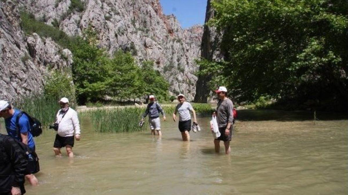 Yozgat'ın tarihi ve doğal güzellikleri arasında yer alan Kazankaya Kanyonu’nu ülke turizmine kazandırılması için Yozgat Valisi Abdulkadir Yazıcı, il protokolü ve gazetecilerle doğa yürüyüşü düzenledi.Çorum’un Ortaköy ilçesine bağlı İncesu köyünden başlayarak 10 kilometre uzunluğunda ve 4,5 saat süren kanyon yürüyüşü Yozgat’ın Aydıncık ilçesine bağlı Kazankaya köyünde sona erdi. Muhteşem görsel manzara eşliğinde gerçekleşen yürüyüşe, Vali Abdulkadir Yazıcı, İl Jandarma Alay Komutanı Albay Recep Yalçınkaya, Bozok Üniversitesi Rektörü Prof. Dr. Tamer Uçar, İl Emniyet Müdürü Saim Akpınar ile Yozgat'ta görev yapan gazeteciler katıldı.Rehber eşliğinde yapılan doğa yürüyüşü sırasında tarihi yapılar ile kanyon içerisindeki dilek kayası gibi farklı yerlerle ilgili bilgiler verildi.Vali Abdulkadir Yazıcı, kanyonun ülke turizmine kazandırılması için proje hazırlığı içerisinde olduklarını belirterek doğal güzelliğin herkes tarafından görülmesi için yapılacak çalışma öncesi kanyonu yerinde incelediklerini söyledi.Yozgat'ın doğal bir güzelliği olan kanyonu, dağcılık ve doğa yürüyüşü için düzenlemeden önce uzmanların yanı sıra toplumun farklı kesimlerinin görüşlerine de başvurduklarını belirten Vali Yazıcı, bu kapsamda Yozgat’ta görev yapan basın mensupları ile de doğa yürüyüşü düzenlediklerini kaydetti. Kartal, su samuru, akbaba gibi bölgeye has hayvanların varlığının kanyona ayrı bir güzellik kattığını dile getiren Vali Yazıcı,”Kanyon bitki türleri açısından da oldukça zengin. Kazankaya Kanyonu’nda gerekli altyapı çalışmalarını yapmak istiyoruz. Ziyaretçilere doğal güzelliklerin yanında konaklamadan, çocuk oyun parkına, piknik alanından, spor alanlarına kadar çeşitli sosyal yaşam alanları sağlamak istiyoruz. İlin ve yörenin markalaşması yolunda yürütülen çalışmalara pozitif katkısı olacaktır. Proje sonucunda altyapı eksiklikleri giderilecek ve Kazankaya Kanyonu, dışarıdan ziyarete gelecek yerli ve yabancı turistler için alternatif bir turistik mekan olacaktır” dedi.Daha önce, Kazankaya Kanyonu için Orta Anadolu Kalkınma Ajansı (ORAN) tarafından Turizm Altyapısı’nı Geliştirme Mali Destek Programı Kapsamı’nda Aydıncık Kaymakamlığı ve İl Özel İdaresi tarafından proje hazırlandığını ve sosyal tesisler yapıldığını hatırlatan Vali Yazıcı, “Şimdi de kanyon içerisine yapacağımız yürüyüş yolunu, kanyonun doğal güzelliğini bozmadan, doğal ortamını koruyarak Kazankaya köyü girişine kadar ulaştırmak istiyoruz. 10 kilometrelik bu parkurlara yön ve bilgilendirme levhaları da koyarak kanyonu doğa turizmine kazandıracağız” diye konuştu.