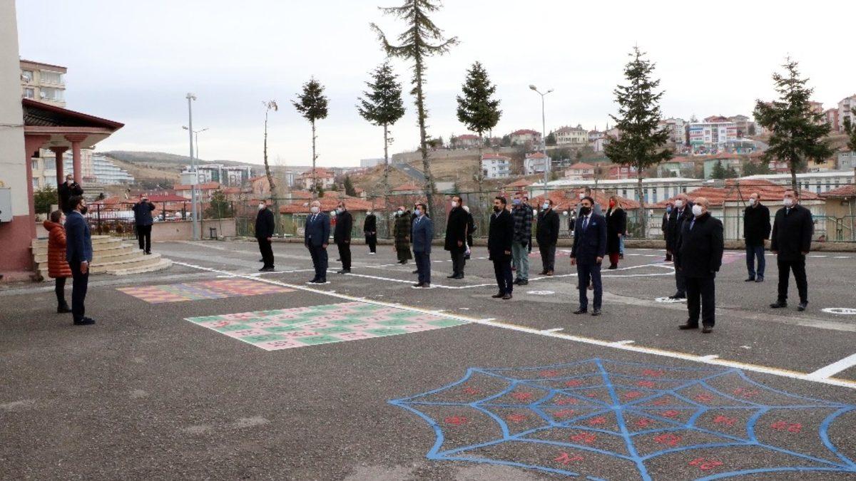 Yozgat’ta, pandemi dolayısıyla uzun zamandır okullarda okunamayan İstiklal Marşı, tüm okullarda, okul yöneticileri, öğretmenler ve görevlilerin katılımıyla okundu.