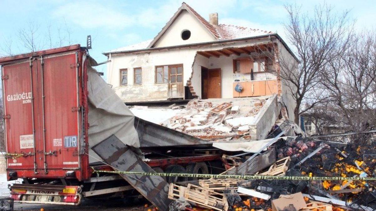Yozgat’ın Sarıkaya ilçesinde portakal yüklü kamyon binaya çarptı. Kazada tır şoförü yaralandı.Edinilen bilgiye göre, Kayseri istikametinden Yozgat istikametine gitmekte olan Üzeyir Kartal yönetimindeki 52 K 5292 plakalı tır, şoförün direksiyon hakimiyetini kaybetmesi sonucu yol kenarındaki atıl vaziyette bulunan Süt Birliği binasına çarptı. Portakal yüklü kamyonda bulunan portakal kasaları yola savruldu. Bir süre aksayan trafik, kasalar kaldırıldıktan sonra normale döndü.Kazada yaralanan tır şoförü Kartal, ambulansla Sarıkaya Devlet Hastanesine kaldırılarak tedavi altına alındı.