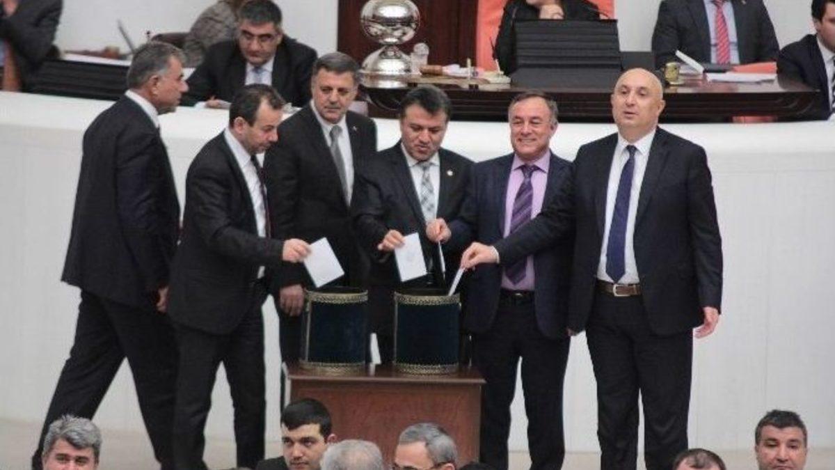 TBMM Genel Kurulunda 4 eski Bakan ile ilgili yapılan Yüce Divan oylamasında zaman zaman gergin anlar yaşanırken, zaman zaman da renkli anlar objektiflere takıldı.4 eski Bakan’ın Yüce Divan’da yargılanıp yargılanmamaları için yapılan oylamada Genel Kurulda zaman zaman renkli görüntüler de yaşandı. Bazı milletvekilleri oy kullanırken fotoğraf çektirirken, HDP’li milletvekilleri ise hep birlikte hatıra fotoğrafı çektirdi. Yaklaşık 12 saat süren oylama sonrasında objektiflere renkli görüntüler yansıdı.