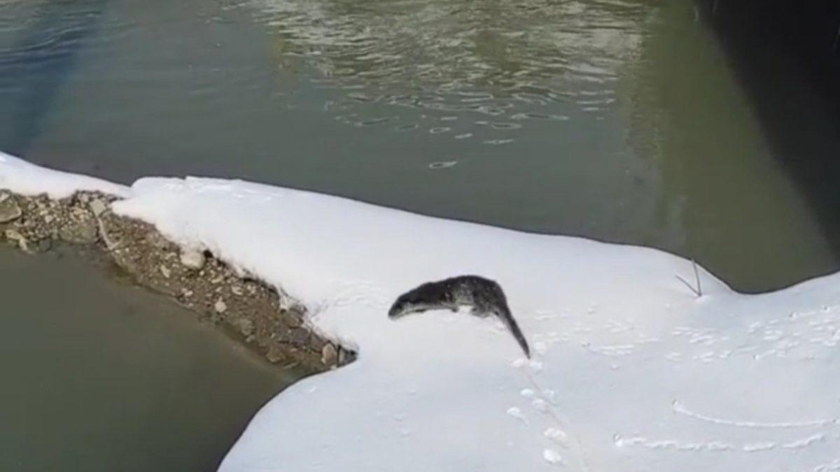 Hakkari’nin Yüksekova ilçesinde nesli tükenme tehlikesi altında olan su samuru görüntülendi.
