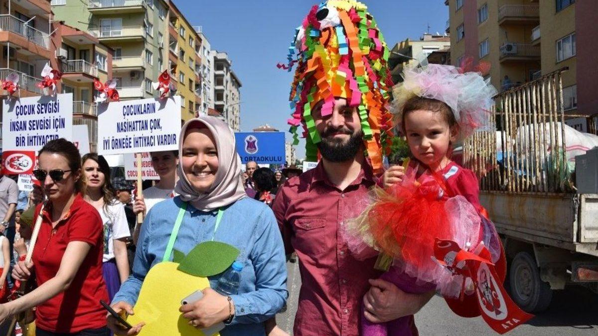 Yunusemre Belediyesinin katkılarıyla düzenlenen 23 Nisan Ulusal Egemenlik ve Çocuk Bayramı korteji renkli görüntülere sahne oldu. Minikler velileriyle birlikte ellerinde pankartlarla bando eşliğinde Halil Yurtseven İlkokulu’ndan Forum Magnesia AVM arkasındaki açık alana kadar yürüdü.Yunusemreli minikler, 23 Nisan Ulusal Egemenlik ve Çocuk Bayramı’na yakışır bir final yaptı. Yunusemre Belediyesi ve Kelebekler Diyarı Anaokulu’nun katkılarıyla 23 Nisan Ulusal Egemenlik Korteji gerçekleştirildi. Kortej yürüyüşüne Yunusemre Belediye Başkan Yardımcısı Şaver Yüksel, Kültür ve Sosyal İşler Müdürü Ahmet Sak, öğretmenler, Özel Yunusemre Anaokulu öğrencileri, Mehmet Suphi Egemen İlkokulu, Mesir Ortaokulu, TOKİ 2 Kültür ve Sanat Merkezi Okul Öncesi Eğitim Grupları katıldı.Velileriyle birlikte birbirinden renkli kıyafetler giyen minikler ellerinde pankartlarla bando eşliğinde şarkılar seslendirdi. Halil Yurtseven İlkokulu’ndan başlayan kortej, Yunusemre Belediyesi’nin Forum Magnesia AVM arkasındaki alanda sona erdi.
