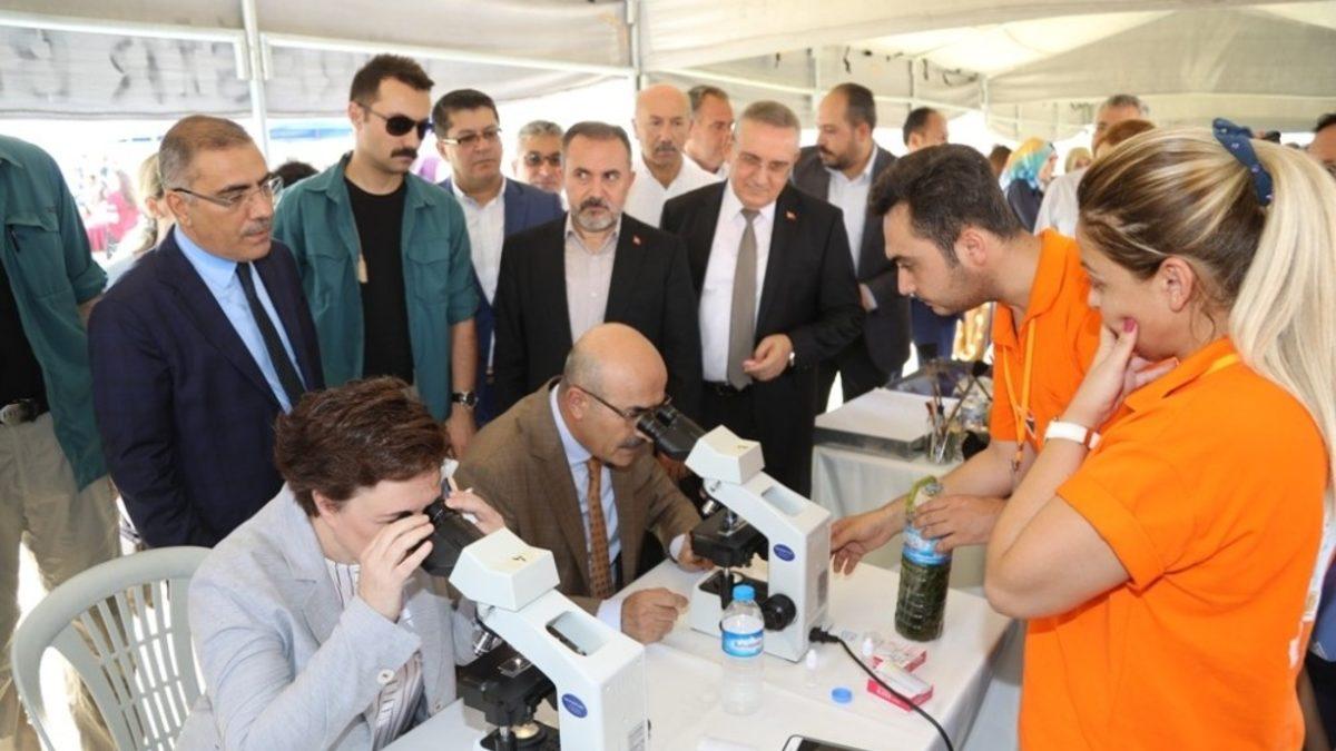 Konuşmaların ardından kurulan stantları tek tek gezen heyet öğrencilerle sohbet edip projeleri incelediler.