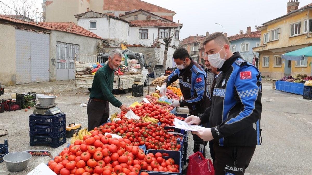 Sivrihisar’da Korona virüsle mücadele çerçevesinde çeşitli önlemler alınmaya devam ediliyor. Bu kapsamda Sivrihisar Belediyesi zabıta ekiplerince halk pazarı esnafı bilgilendirildi. Esnafa maske ve eldiven de dağıtan ekipler, "Önlem amacıyla pazar tezgahlarına yaş meyve ve sebzelerin seçilerek alınmasının yasak olduğunu belirten yazılar eklendi. 65 yaş üstü ve kronik rahatsızlığı olan vatandaşlarımızın pazar ihtiyaçları talepte bulundukları takdirde 112, 155, 156 ve belediyemiz ekiplerince karşılanacaktır” uyarılarında bulundu.