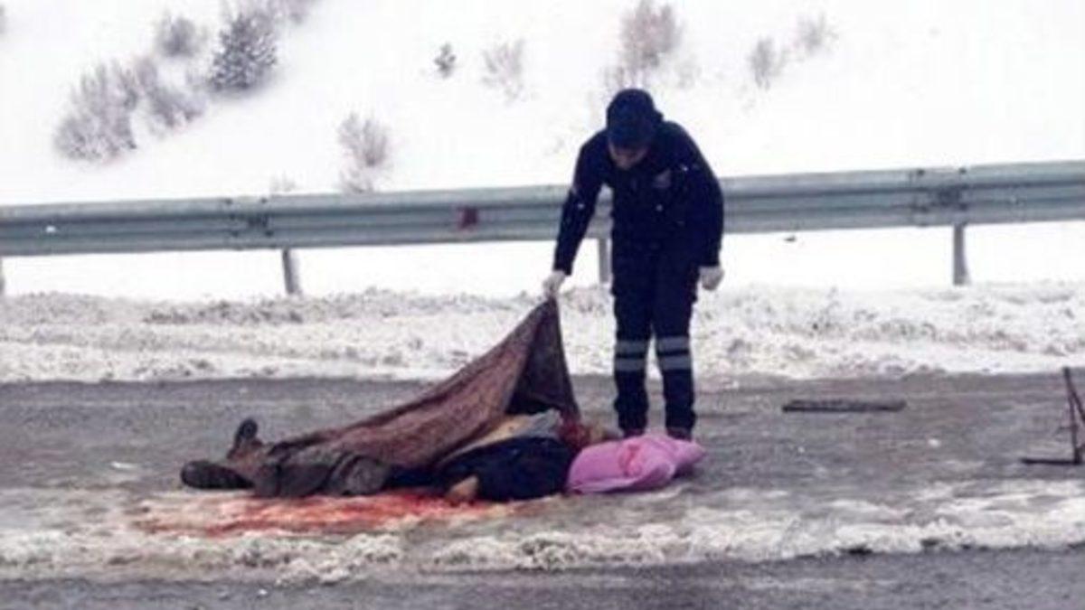 Recep DEMİRCİ/ ERZİNCAN, Kaza bugün saat 10.30 sıralarında Erzincan- Sivas karayolunun 35’nci kilometresindeki Sakaltutan mevkisinde meydana geldi. Erzincan’dan Sivas yönüne giden 68 HF 227 plakalı TIR'ın sürücüsü Mehmet Özkök, kar yağışı nedeni ile aracını yol kenarında durdurdu. Sürücü Mehmet Özkök zincir takmak için hazırlık yaparken, Şakir Opan yönetimindeki 31 KLE 20 plakalı TIR da yokuşu çıkamayarak yanında durdu. Bu sırada karşı yönden gelen Ensar Güneş yönetimindeki 61 ED 611 plakalı otomobil kontorlden çıkarak önce aynı yönde bekleyen Ahmet Cengiz yönetimindeki 06 DR 0276 plakalı minibüse arkadan çarptı, ardından da TIR sürücüsü Mehmet Özkök’ü altına aldı. Olay yerinde yaşamını yitiren Mehmet Özkök'ün cenazesi Mengücek Gazi Eğitim ve Araştırma Hastanesi'ne kaldırıldı.