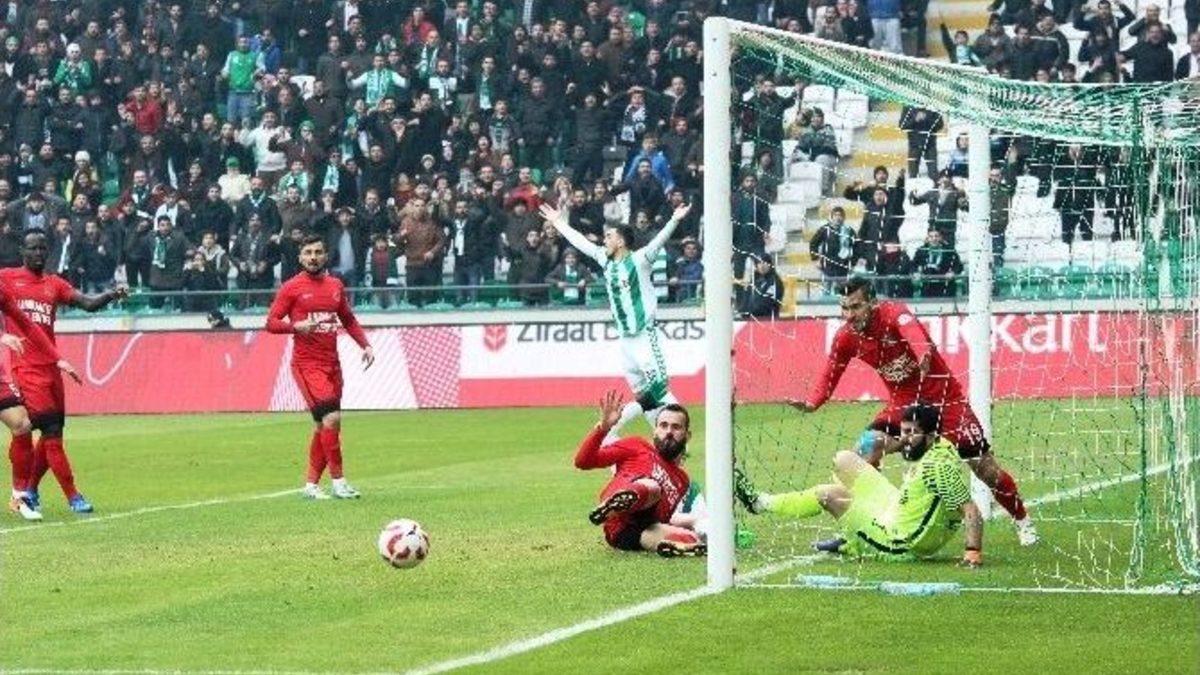 Atiker Konyaspor Ziraat Türkiye Kupası son 16 turunda sahasında karşılaştığı Ümraniyespor ile maçın normal süresinde 1-1 berabere kaldı. Maçın uzatma bölümünde Konyaspor rakibini 2-1 mağlup ederek adını çeyrek finale yazdırdı.Maçtan dakikalar1. dakikada ceza sahası içinde topla buluşan Mahatma Otoo, altıpas üzerinden vuruşunu yaptı, top dışarı çıktı.4. dakikada Atiker Konyaspor, Ömer Ali Şahiner ile gole yaklaşıyor ancak top direkten döndü.14. dakikada Atiker Konyaspor atağında ceza sahası içi sol çaprazından Mehmet Uslu’nun çektiği şutta top kaleyi bulmadı.20. dakikada Seidu Salifu, rakip ceza sahasının hemen dışında kaleyi karşısına alıp sert vurdu, savunma araya girerek tehlikeyi önledi.36. dakikada Atiker Konyaspor atağında Skubic’in ortasında savunma topu uzaklaştırdı. Topla buluşan Hora’nın vuruşunda top direkten döndü.44. dakikada Konyaspor’un kullandığı kornerde altıpas üzerinde yükselen Vukoic’in kafa vuruşunda top auta çıktı.48. dakikada Ümraniyespor atağında Bahadır’ın ceza sahası içine bıraktığı pasında topla buluşan Serdar topu ağlarla buluşturdu. 0-149. dakikada Ümraniyespor atağında Bahadır ceza sahasının dışından kaleyi cepheden gören noktadan şut çekti, defansın müdahalesiyle tehlike engellendi.62. dakikada Konyaspor atağında Volkan’ın ceza sahası içine gönderdiği pasında Skubic’ten seken topa sert vuran Halil İbrahim’in şutu auta çıktı.79. dakikada Skubic’in ceza sahası içine yolladığı topa sert vuran Halil İbrahim’in vuruşu direkten avuta çıktı.84. dakikada Milosevici’in ceza sahasına gönderdiği topu Skubic Rangelov’a gönderdi. Rangelov topa gelişine sert vurarak meşin yuvarlağı ağlara gönderdi. 1-198. dakikada Konyaspor atağında Bajic, Milosevic’in şutunun ardından defanstan dönen topa vurmak isterken yerde kalınca hakem penaltı noktasını gösterdi. Skubic’in kullandığı penaltı ağlarla buluştu. 2-1111. dakikada Konyaspor atağında Ömer Ali’nin pasında topla buluşan Bajic’un şutunda top avuta çıktı.Stat: Büyükşehir BelediyeHakemler: Arda Kardeşler xx, Ali Saygın Ögel xx, Hasan Yemişken xxKonyaspor: Kaya xx, Skubic xx, Ali Turan xx (Rangelov dk. 80 xxx), Vukovic xxx, Mehmet xx, Ali Çamdalı xx, Volkan xx, Ömer Ali xx, Halil xx, Hora x (Bajic dk. 62 x), Fofana x (Milosevic dk. 67 x)Yedekler: Abdulaziz, Mbamba, Hadziahmetoviç, Can DemirTeknik Direktör: Aykut KocamanÜmraniyespor: Metin xx, Salifu xx, Mustafa xx, Abdullah xx (Erol dk. 79 x), Bahadır Taşdelen xx (Timur dk. 65 x), Serdar xxx, İbrahim xx (Beleck dk. 73 x), Osumanu Otoo xx, Mücahit xx, Ömer xx, Tarık xxYedekler: Süleyman Enes, Bahadır, Mehmet, SametTeknik Direktör: Erkan SözeriGoller: Rangelov (dk. 84), Vukovic (dk. 99 pen.) (Atiker Konyaspor), Serdar (dk. 48) (Ümraniyespor)Kırmızı Kart: Serdar (dk. 68) (Ümraniyespor)Sarı kartlar: Ömer Ali, Kaya, Volkan (Atiker Konyaspor), Tarık, Mustafa, Abdulllah, Ömer (Ümraniyespor)