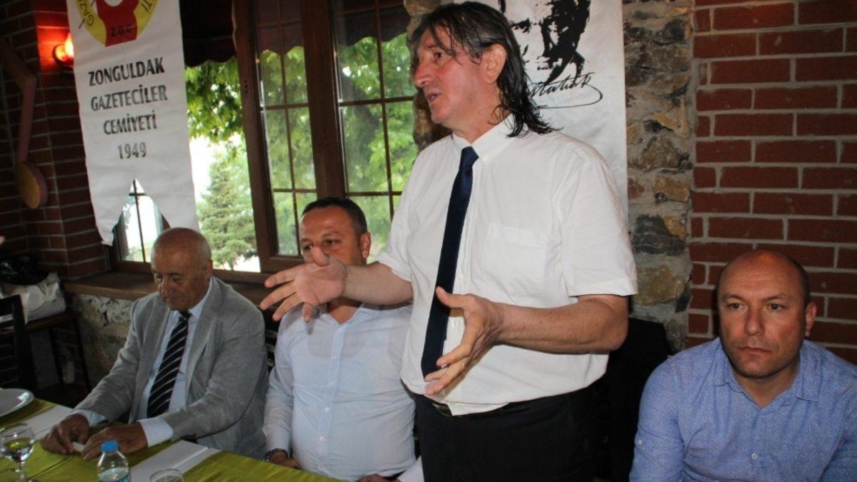 Valilik binası önündeki programın ardından Cemiyet Lokali’nde yemek programı düzenlendi. Buradaki programa Belediye Başkanı Ömer Selim Alan, Baro Başkanı Özel Eroğlu, Milli Eğitim Müdür Vekili Murat Kapıcı ve gazeteciler katıldı. Burada konuşan ZGC Başkanı Derya Akbıyık, "Bilindiği gibi 111 yıl önce Türk basını üzerindeki sansür uygulamaları kaldırılmış, basın bir anlamda özgür olmuştu. Aradan geçen 111 yıl içerisinde, darbeler, muhtıralar, bir takım krizler gibi nedenlerle kesintiye uğrayan bu özgürlük için Türk basını kendisine tanınan yasal çerçeveler içinde gereken direnişleri yapmış ancak bazen de başarılı olamamıştı. Türk basını özellikle son 60 yıl içerisinde kendisine yöneltilen baskıcı uygulamalar karşısında çaresiz kalmıştır. Onlarca gazeteci faili meçhul cinayetlere kurban gitmiş, binlerce gazeteci de yargılanıp hüküm giymişlerdir. Tabi ki bununla birlikte kazanımlarımız da oldu. Çok uzun süredir uğraştığımız, ilan gelirlerimize iki kere önemli oranlarda fiyat artışı geldi. Bu durum karşısında sevindik, yatırımların azalması ve ilanlarında düşük düzeyde seyretmesi bizlerinde gelirlerinin daha da azalmasına etken oldu. Aboneler de KDV oranının sıfıra çekilmesi bizler adına olumlu gelişmeydi. Personel maliyetleri artarken, vergi ve stopaj yükselirken, sigorta ödemelerin de önemli yüksek oranı görüyoruz. Yıpranma payı olan mesleğimizde, İŞKUR önemli katkı veriyor, İŞKUR gazete sektörüne tam 9 ay bir çalışma katkısı veriyor. Bunu daha çok kullanmalıyız. Yakın dönemde KOSGEB kanalı ile yeni istihdam seçeneği açıklandı. Bu durumdan çok da yararlanamadık, burada işçi çıkartarak, yeni personel alımının önünün açılmasının yanlış olduğunu, mevcut çalışanlara ilaveten yeni istihdamların yaratılmasının ve mevut çalışanların bu haktan yararlanmasının verimli olacağını ifade ettik. Bu konuda halen daha somut bir gelişmeyi göremedik. Şu bilinmelidir ki, gazete sektörü çok vasıflı bir camiadır. Gazeteci yetiştirmek çok da kolay değildir, .mesleğimiz de görev yapan gazeteciler çok da kolay yetişmiyor. 2019 yılının ikinci yarısına geldiğimiz de problemlerimiz de artarak sürüyor. Devam ediyor. Yeni çıkacak yargı reformuna tabi ki evet diyoruz, bir tek hayır dediğimiz konu, yeni yargı reformunda gazetelerde yayımlanan icra ilanları, gayrimenkul satış ilanları kaldırılıyor, elektronik ortamda, adli mercilerin sitelerinde yayımlanması ifade ediliyor. Bu maddenin kaldırılmasına karşın mücadelemizi özellikle ilimiz ve bölgemizde ki vekillerle sıklıkla istişare ederek, bu maddenin geçmemesini durdurmamız gerekiyor. Bugün adına meclisin eylül toplantısına bu yasa sarktı. İnşallah bu konuda çalışmalarımızı sürdüreceğiz. Biz, Zonguldak Gazeteciler Cemiyeti olarak bunu dile getirmeyi en önemli görevimiz şeklinde düşünüyoruz. Sarı basın kartları değişiyor, mavi renk oldu. Dağıtımı devam ediyor. Bazı meslektaşlarımızın kartları eksikliler nedeni ile yeniden düzenleniyor. Sarı basın kartı olan her meslektaşımız gri pasaport alsın, almalı. Hizmet pasaportunda çalıştığı gazete görev yazısı yazabiliyor, istenirse üyemiz ise ZGC olarak bizlerde yazabiliyoruz. Hizmet pasaportunu tüm sarı basın kartlı üyelerimizin çıkarmasını ısrarla söylüyorum. Tüm dünyada vizesiz giriş hakkımız var. Ayrıca pasaport çıkarma maliyeti de sadece cüzdan ödemesi yapılıyor. Yurt dışı seyahatlerimizde ve görevlendirmeler de üyelerimize de öncelik vereceğiz. Eğitim durumu nedeni ile sarı basın kartı almayan meslektaşlarımız için girişimlerimiz sürüyor, bu konuyu da inşallah sonuçlandıracağız. Bu arada çeşitli vesilelerle dile getirdiğim Basın sitesi ile ilgili son gelişmeleri kısaca aktarmak istiyorum Basın sitemiz büyük ölçüde tamamlamıştır ve çok yakında basın mensubu arkadaşlarımıza anahtarları verilip teslim edilecektir. Biz, Zonguldak Gazeteciler Cemiyeti olarak bu konuda üzerimize düşeni yaptığımız kanısındayız ve hatta eminiz. Çok yakında müjdesini vereceğimiz, sadece ve sadece üyelerimiz için bir de "Dinlenme Tesisleri" projemiz vardır, bu konuda gerek TOKİ gerekse üst düzey yöneticilerimiz ile görüşmelerimiz sürüyor, yakın sahillerde hatta Marmara, Karadeniz ve Ege sahillerinde arsa arayışı içine girmiş bulunmaktayız, yakında böyle bir arsanın bulunup tarafımıza tahsisini sağlayacağımıza eminim, basın mensubu arkadaşlarımız hazır olsunlar, nasıl ki konutlarını teslim ediyoruz, yazlıklarını da teslim edeceğiz. Bunları da en düşük maliyetle gerçekleştireceğiz. Zonguldak Gazeteciler Cemiyeti olarak sözümüzdür bu" diye ifade etti.