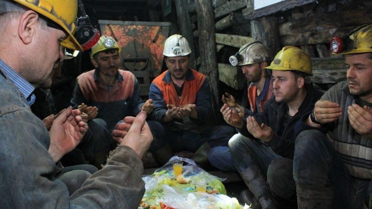 Zonguldak’ta özel bir maden ocağında çalışan işçiler yılın ilk sahurunu yerin metrelerce altında yaptı.Kilimli ilçesine bağlı Gelik beldesinde bulunan Arılar Madencilik isimli özel maden ocağında gece vardiyasında çalışan işçiler, yılın ilk sahurunu birlikte yaptı. Domates, biber, peynir, zeytin, salatalık ve ekmekten oluşan sahur menüsünde sohbet eden işçiler, yerin yaklaşık 200 metre altında ailelerinden uzak sahur yaptı. Ramazan ayının gelmesine sevinen işçiler, ailelerinden uzak sahur yapmanın burukluğunu yaşadı. Yerin metrelerce altında zor şartlarda hem oruç tutup hem çalıştıklarını ifade eden 10 yıllık maden işçisi Ozan Oruç, “10 yıldır maden işi ile uğraşıyorum. Ramazanların tekrarını diliyoruz. Burada bu şartlarda oruç tutup çalışmak zor. Cenabı Allah bize güç veriyor yardım ediyor. Evimizden ailemizden ayrıyız ama yapacak bir şey yok çalışacağız. Çok şükür bu senede ramazana ulaştık. Allah inşallah bir dahaki seneye de nasip eder” dedi.Maden şartlarına alıştıklarını ifade eden maden işçisi Muhammet Alper, “15 yıldır madende çalışıyorum alıştık artık Allaha şükürler olsun. Ailemizden uzaktayız ama burasıda bizim ailemiz soframızda zeytin, peynir, domates, biber, soğan ve içecekle sahur yapıyoruz” diye konuştu. Aile ortamından uzak arkadaşları ile beraber çalıştıklarını belirten Maden Mühendisi Emin Çetinkaya, “5 yıldır burada çalışıyorum. Ramazan ayının ilk sahurunu arkadaşlarla beraber yaptık. Yıllardır bu şekilde çalışıyoruz. Ailemizden uzaktayız ama burada arkadaşlarla hep beraber çalışıyoruz. Şuan burada 7 kişiyiz toplamda 20 arkadaşımız var bu vardiyada diğer yerlerde çalışan arkadaşlarımız da kendileri beraber sahur yapıyorlar” diye ifade etti.İşçiler, yemek sonrası yapılan duaların ardından kömür kazmaya devam etti.