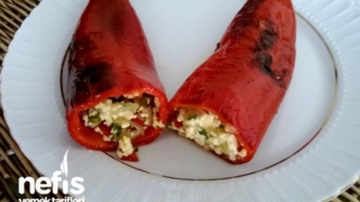 1. Kırmızıbiberleri yıkayıp baş kısmını kesin çekirdeklerini çıkartın. 2. Ayrı bir kabın içinde peyniri ezin, ince kıyılmış maydanoz-dereotu ilave edip karıştırın. 3. Biberleri fırında yumuşayana kadar pişirin ardından iç harcını doldurup servis yapın. 4. Üzerine zeytinyağı gezdirip maydanoz ile süsleyebilirisiniz. Afiyet Olsun. Not: Dilerseniz damak zevkinize uygun peynir ve baharatlarla zenginleştirebilirisiniz