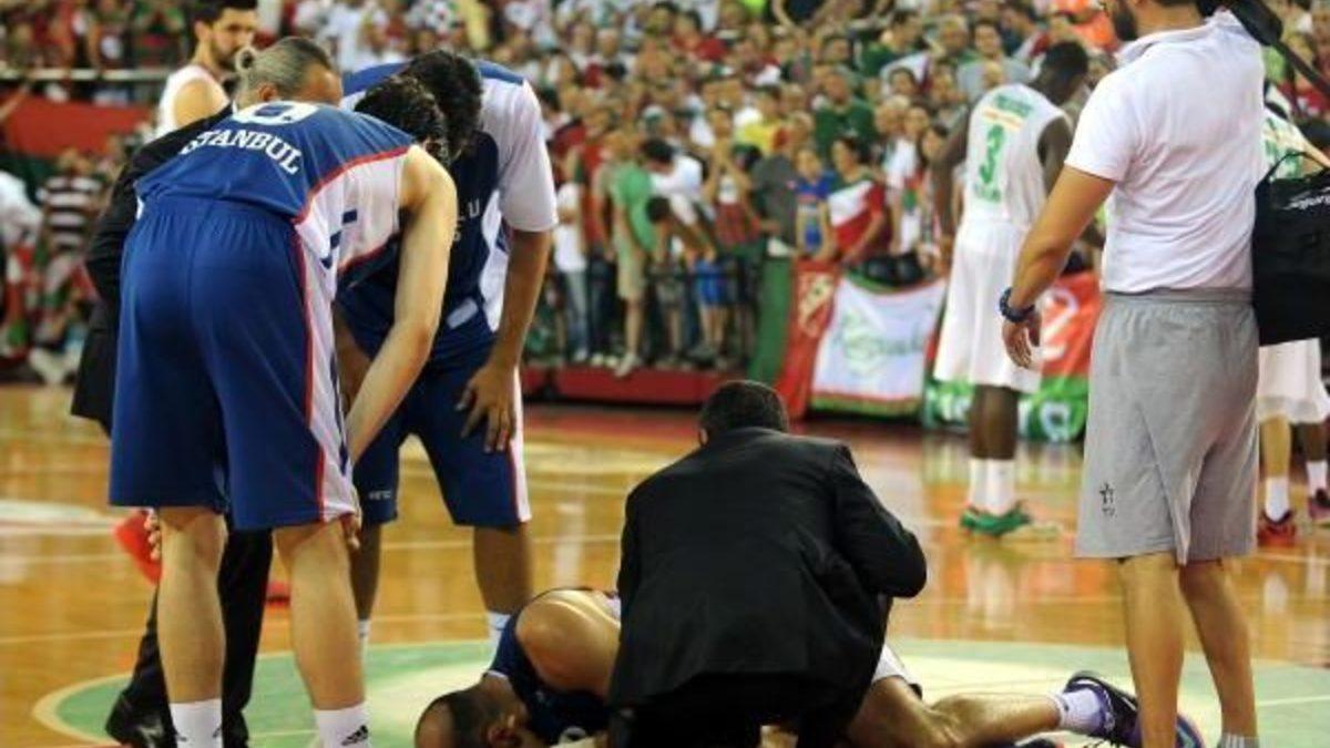 Ergin KARATAŞ / İZMİR, Türkiye Basketbol Ligi'nde sezonun ilk yarısında 2 Kasım'da İstanbul'da oynanan maçta o dönem yeşil kırmızılı ekipte oynayan Mutlu Demir'le girdiği mücadelede dirseği kırılan Krstic, pazar akşamı yapılan play off final serisinin üçüncü randevusunda dizinden sakatlandı.